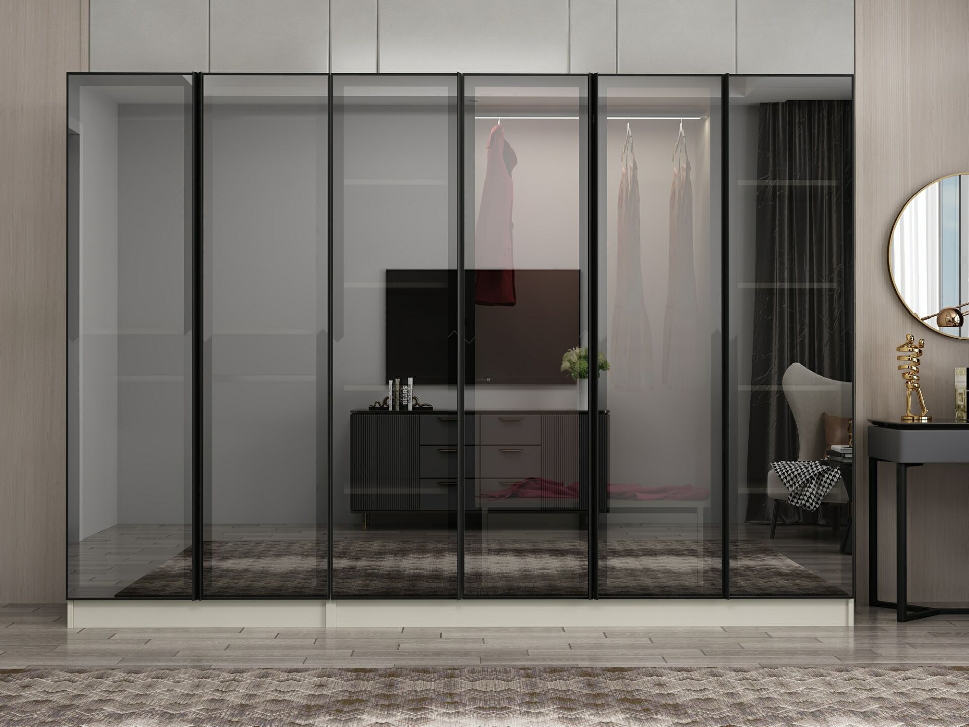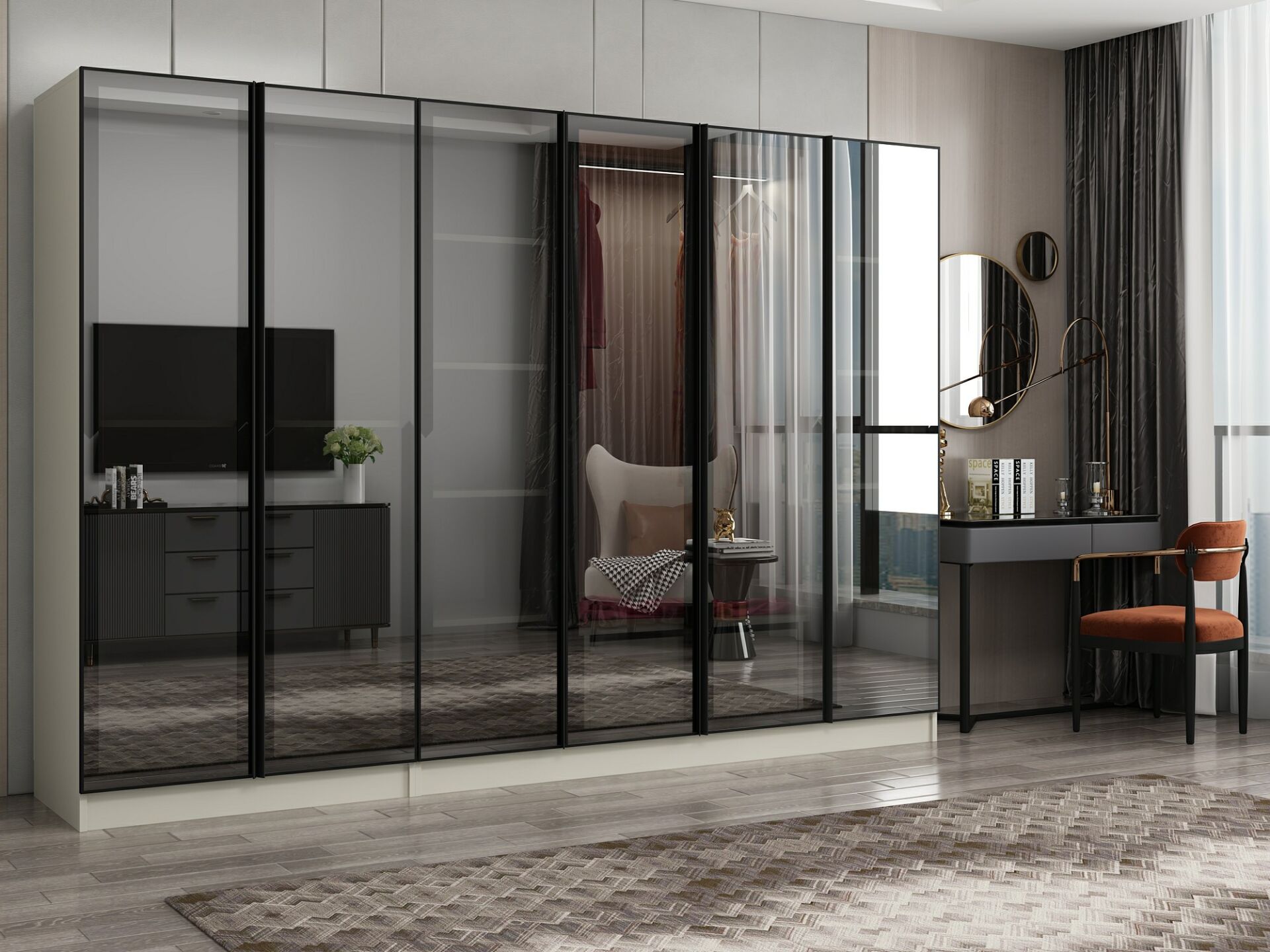Nisa 6 Kapaklı 2 Çekmece Dolap Kumtaşı Reflekte Cam