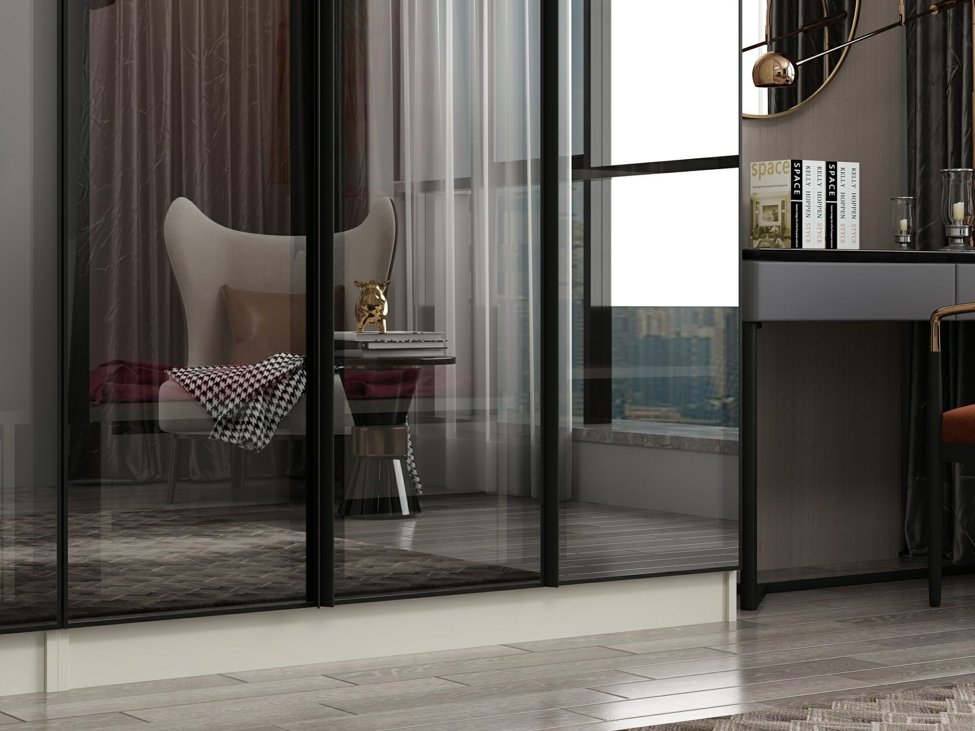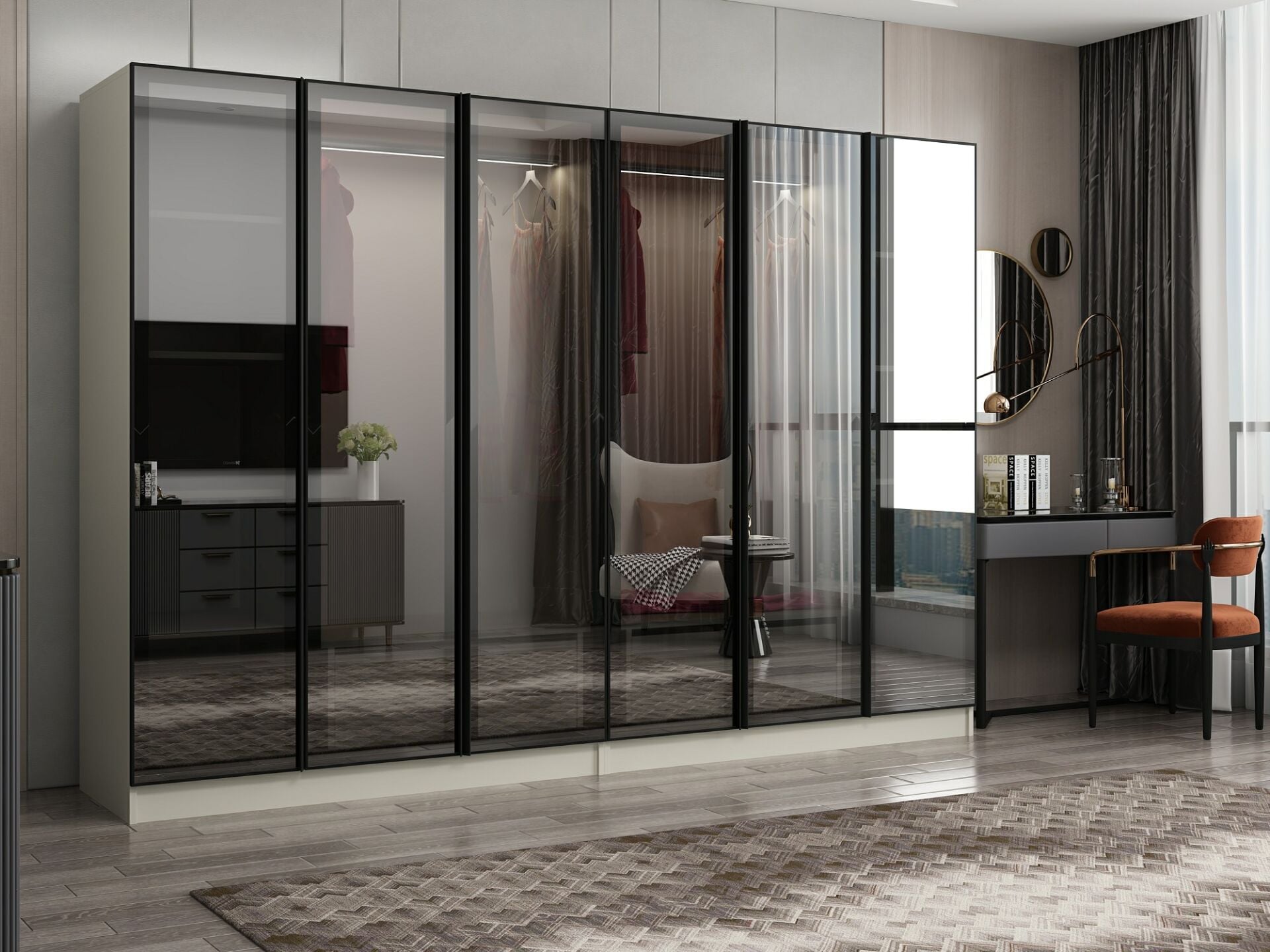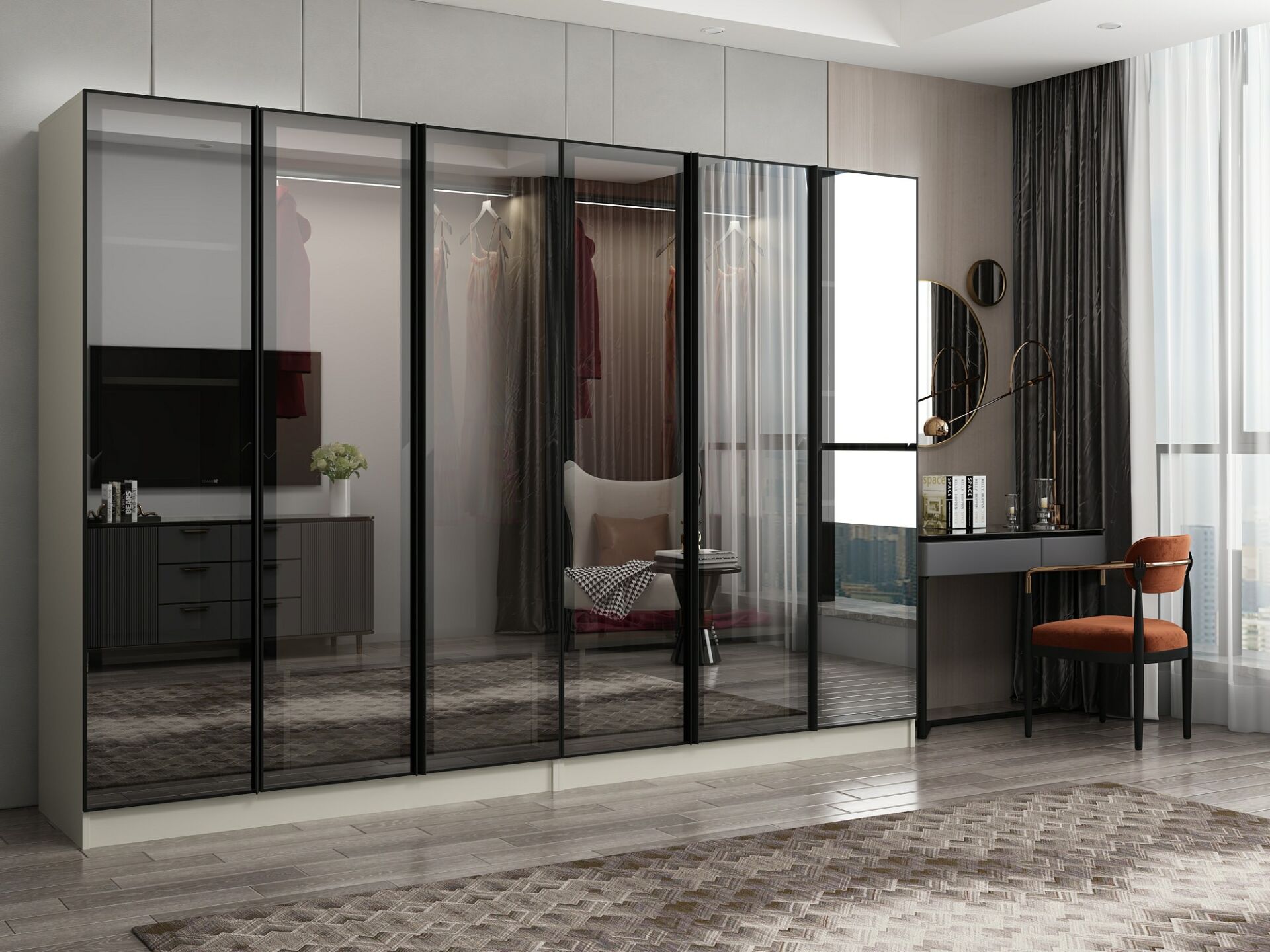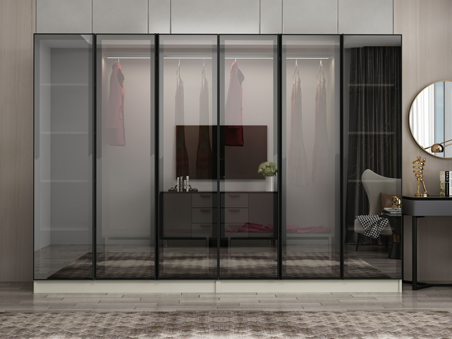 Nisa 6 Kapaklı 4 Çekmece Dolap Kumtaşı Reflekte Cam
