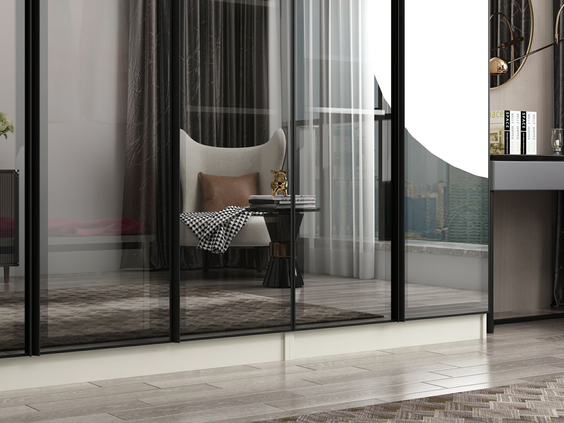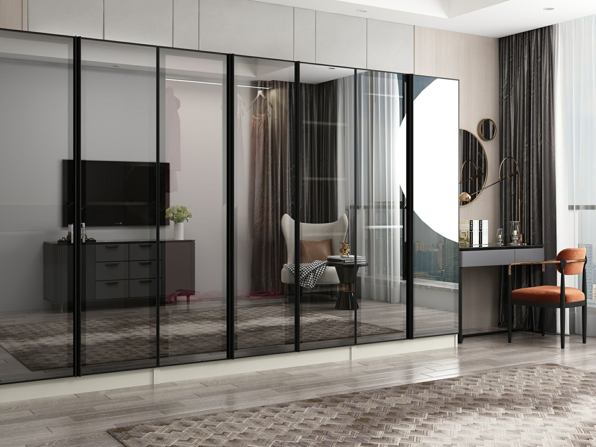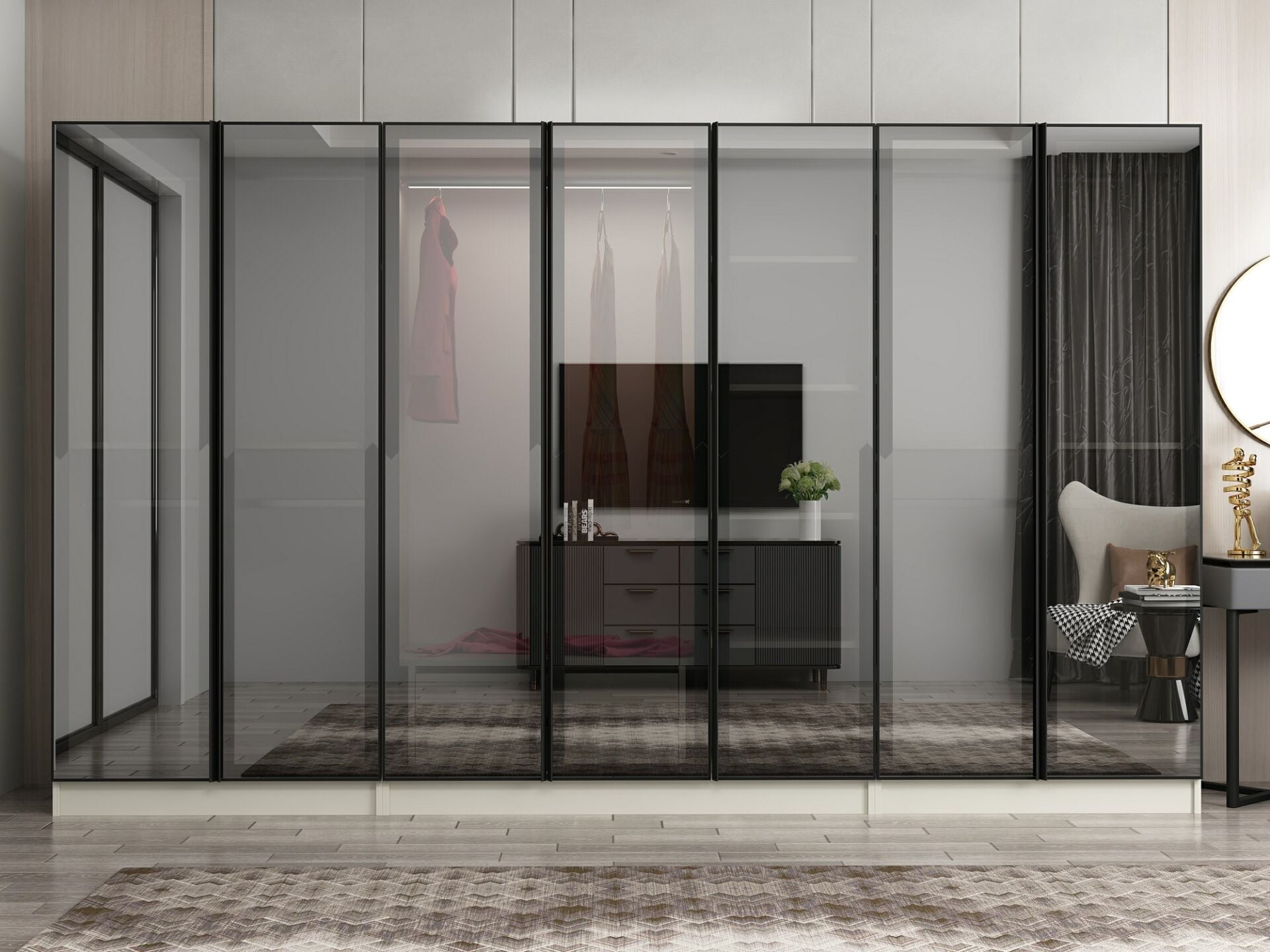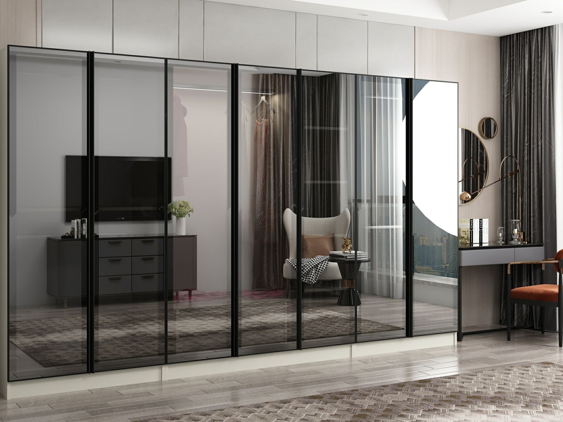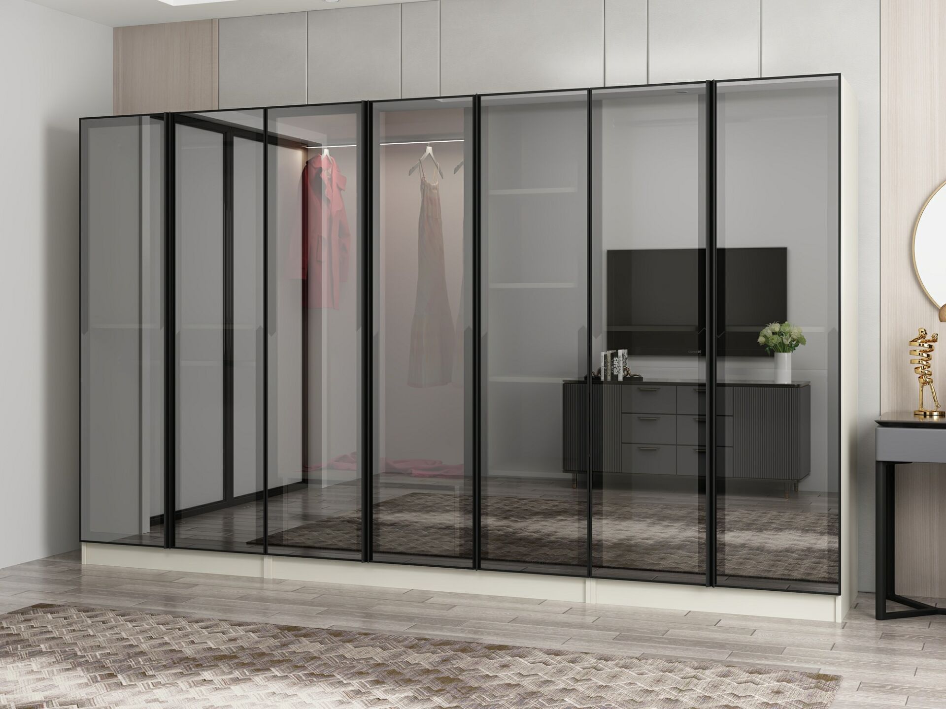 Nisa 7 Kapaklı 2 Çekmece Dolap Kumtaşı Reflekte Cam