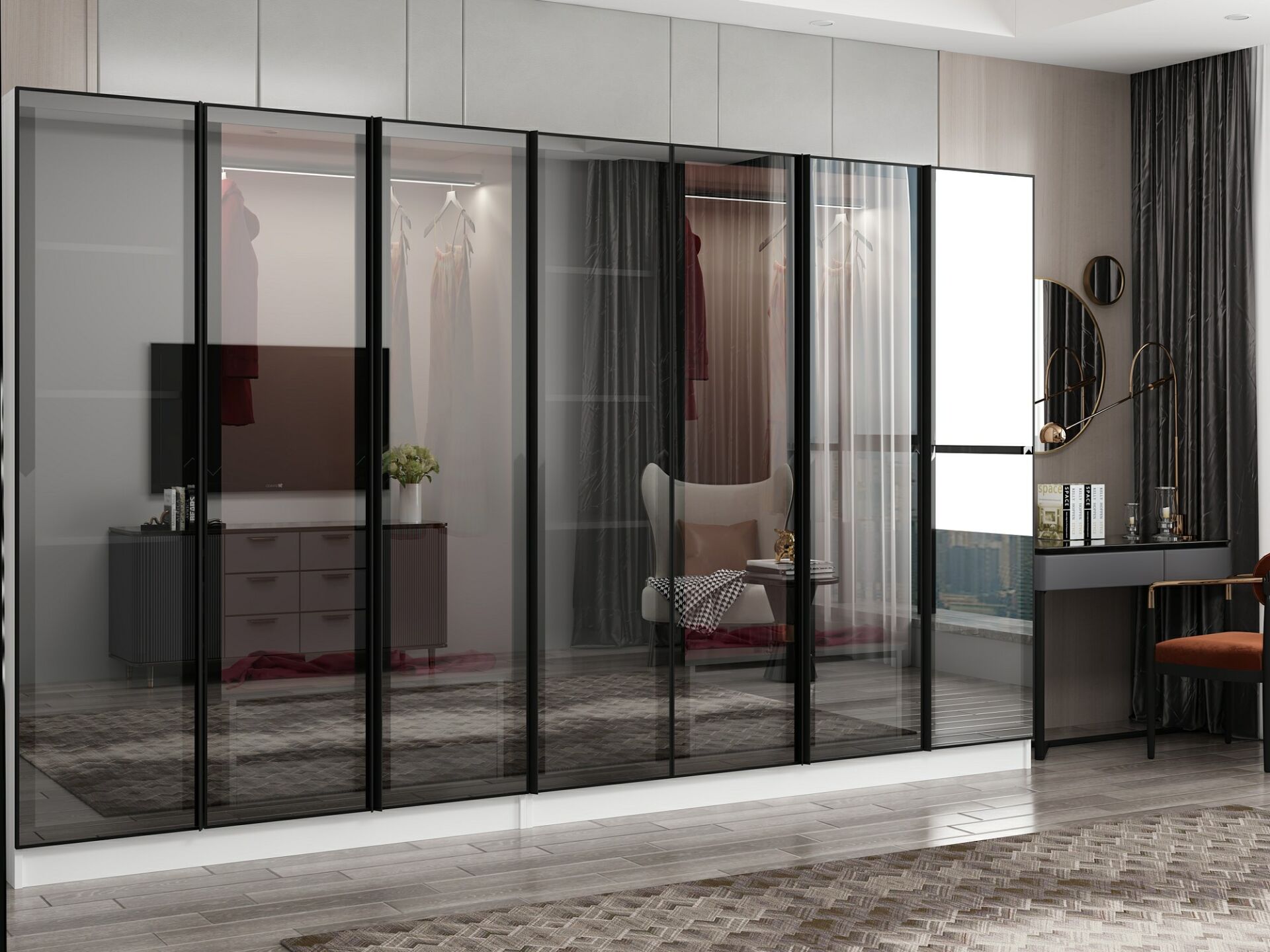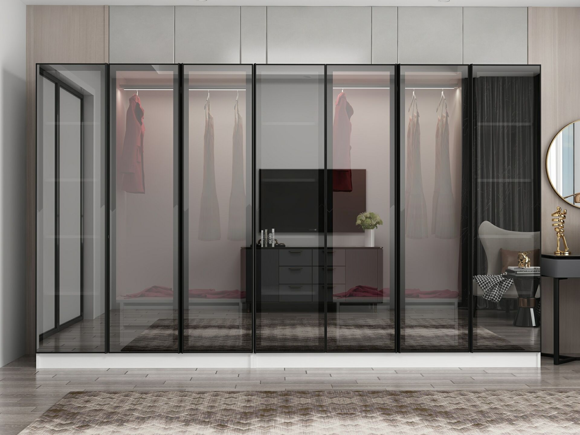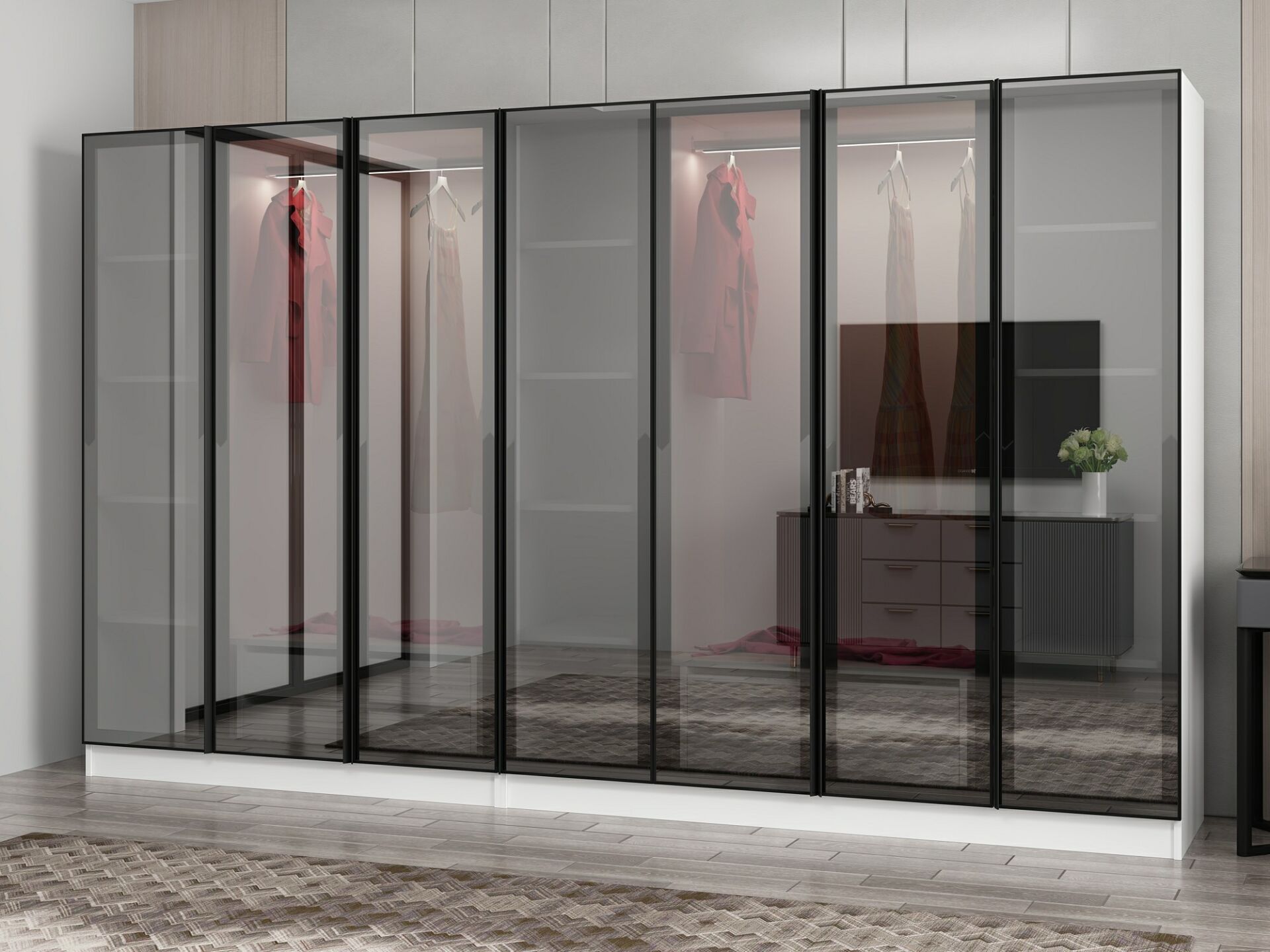 Nisa 7 Kapaklı 4 Çekmece Dolap Beyaz Reflekte Cam