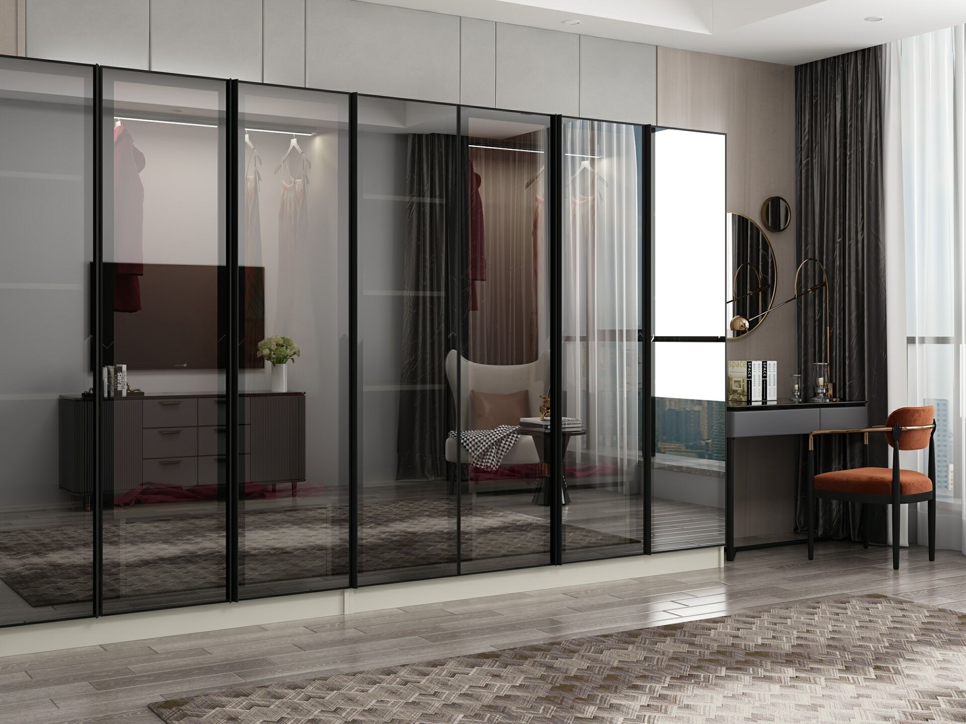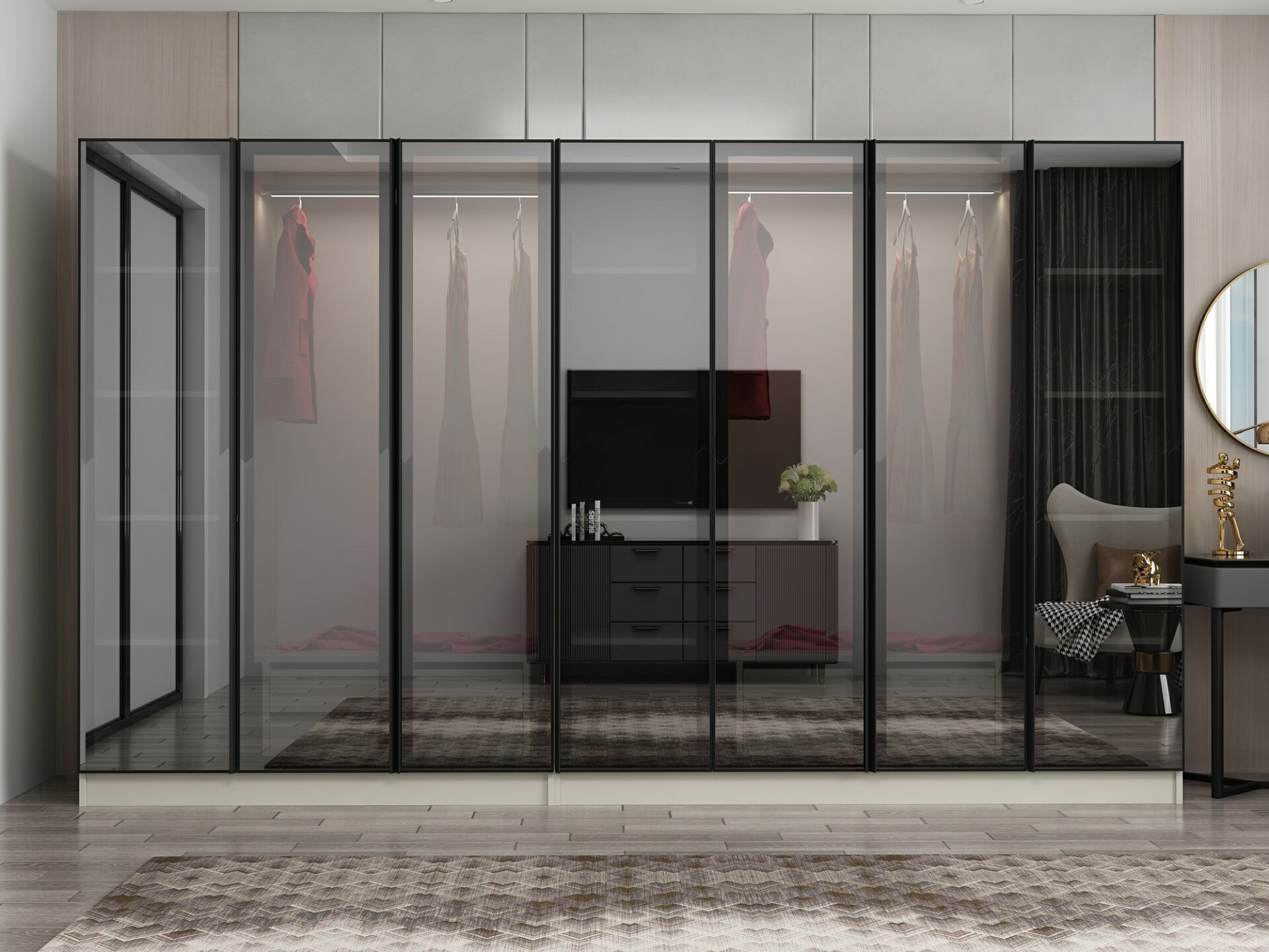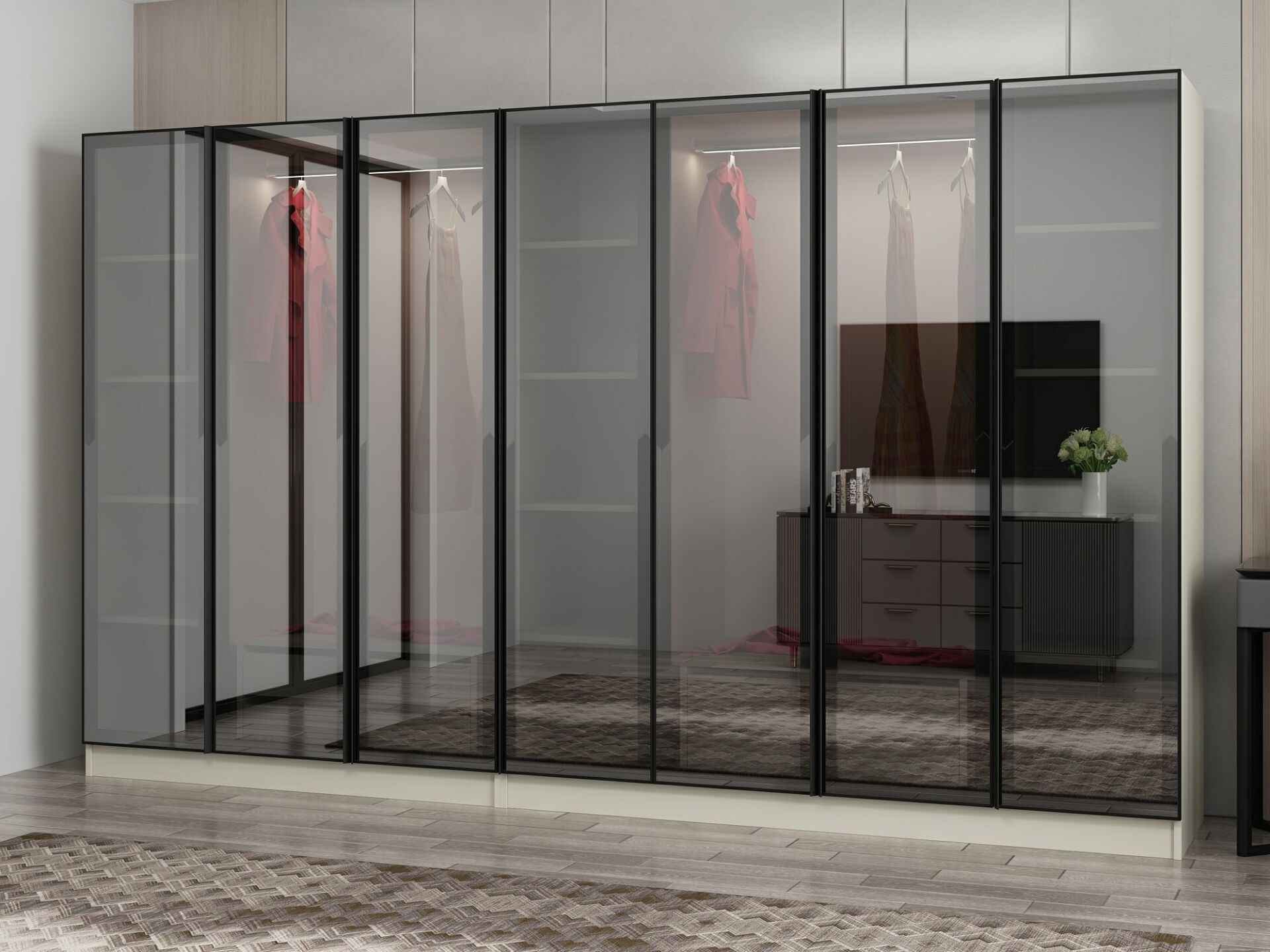 Nisa 7 Kapaklı 4 Çekmece Dolap Kumtaşı Reflekte Cam