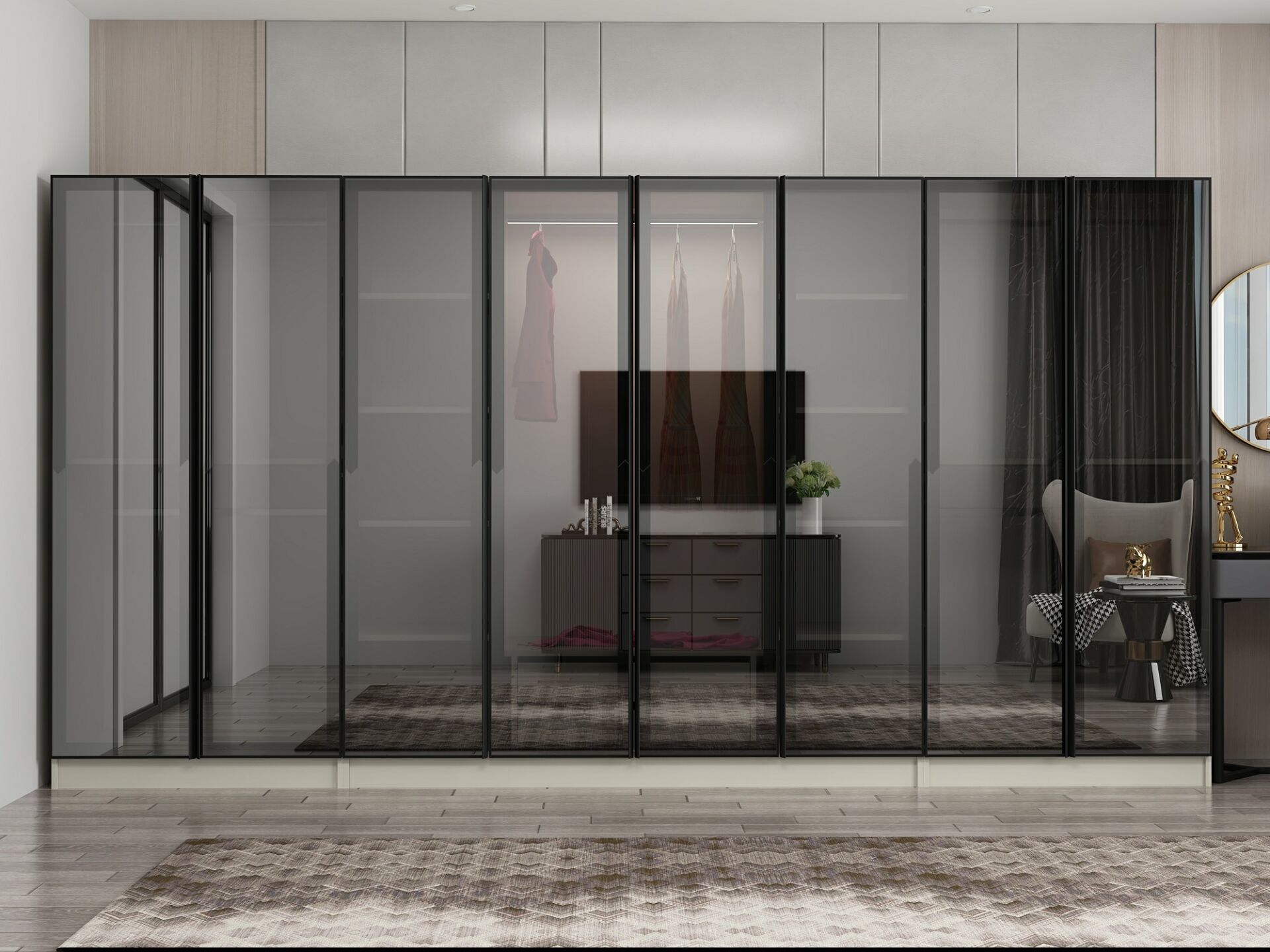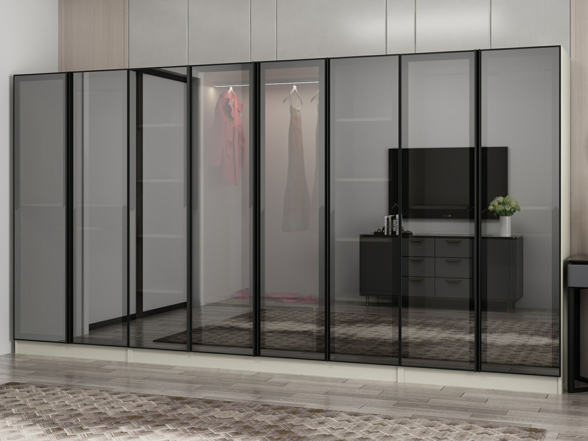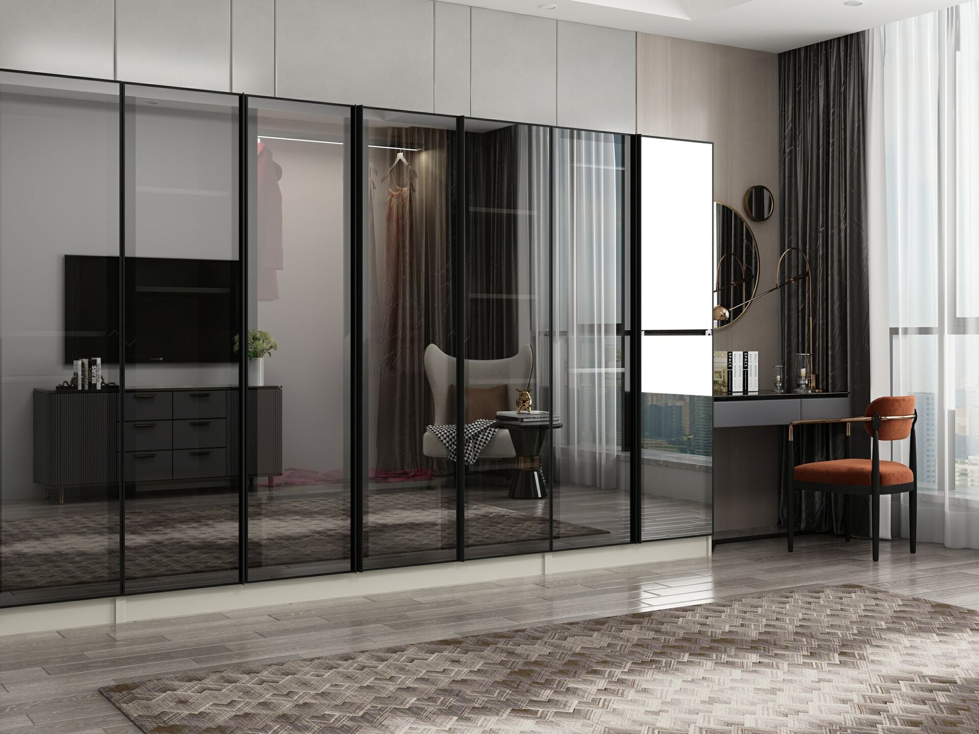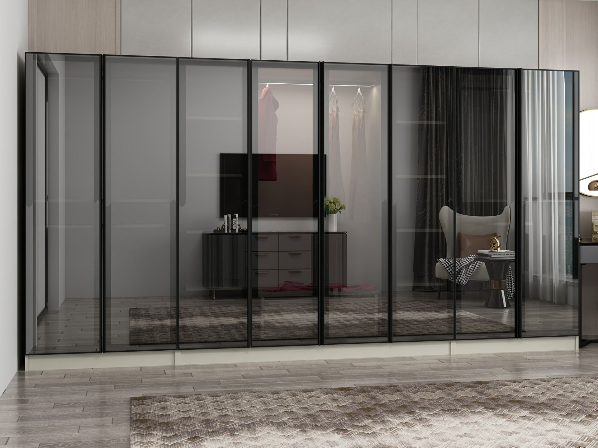 Nisa 8 Kapaklı 2 Çekmece Dolap Kumtaşı Reflekte Cam