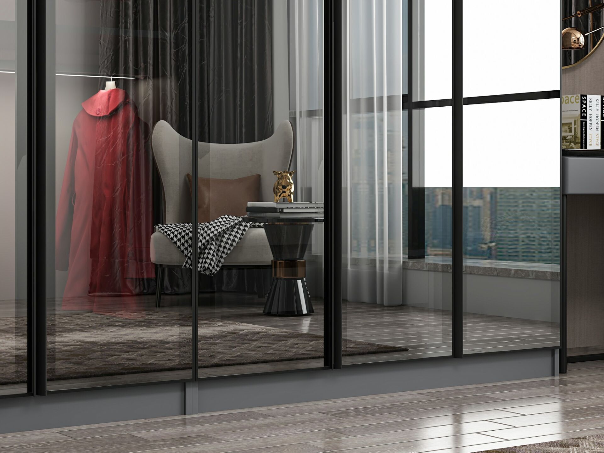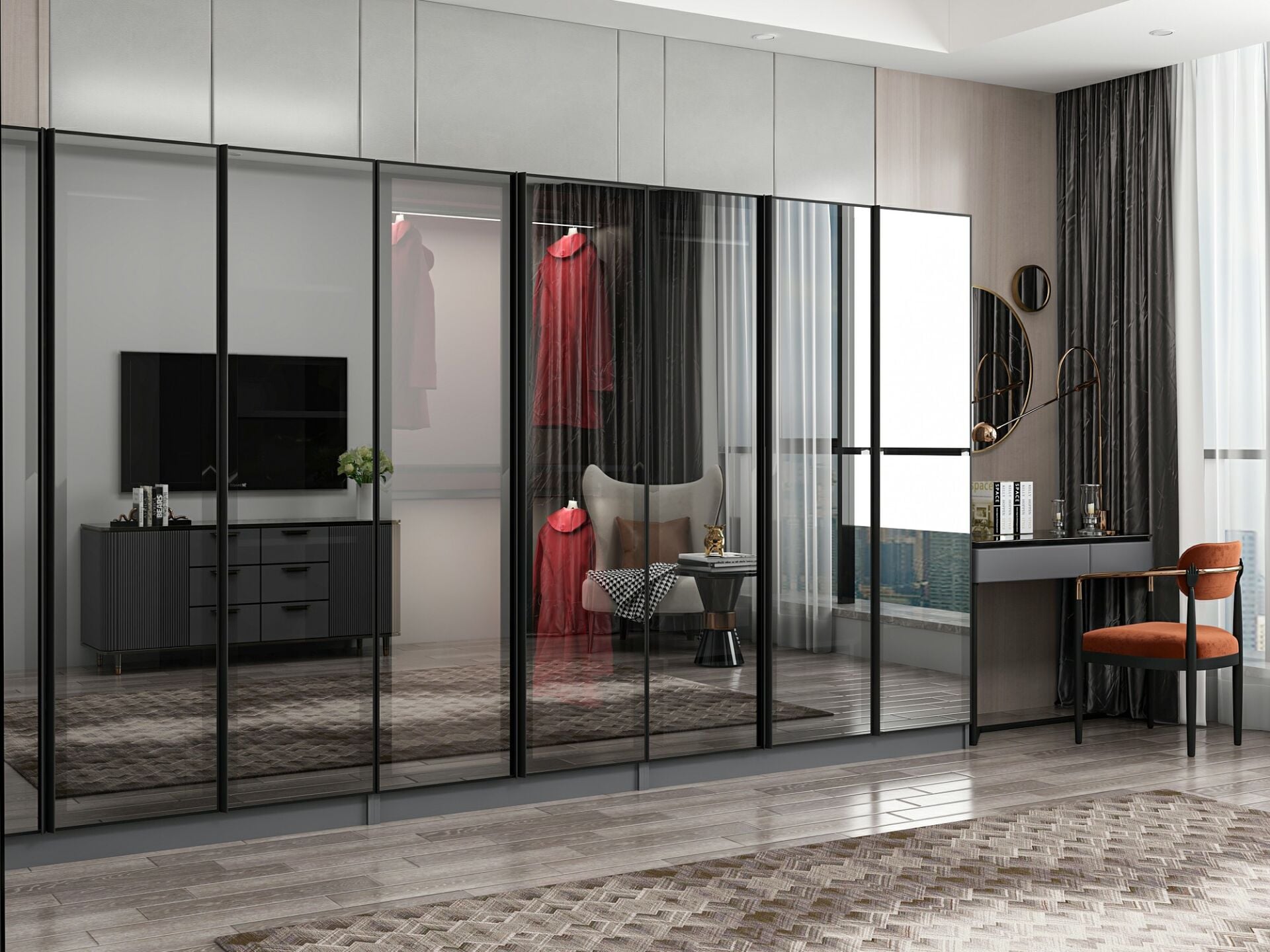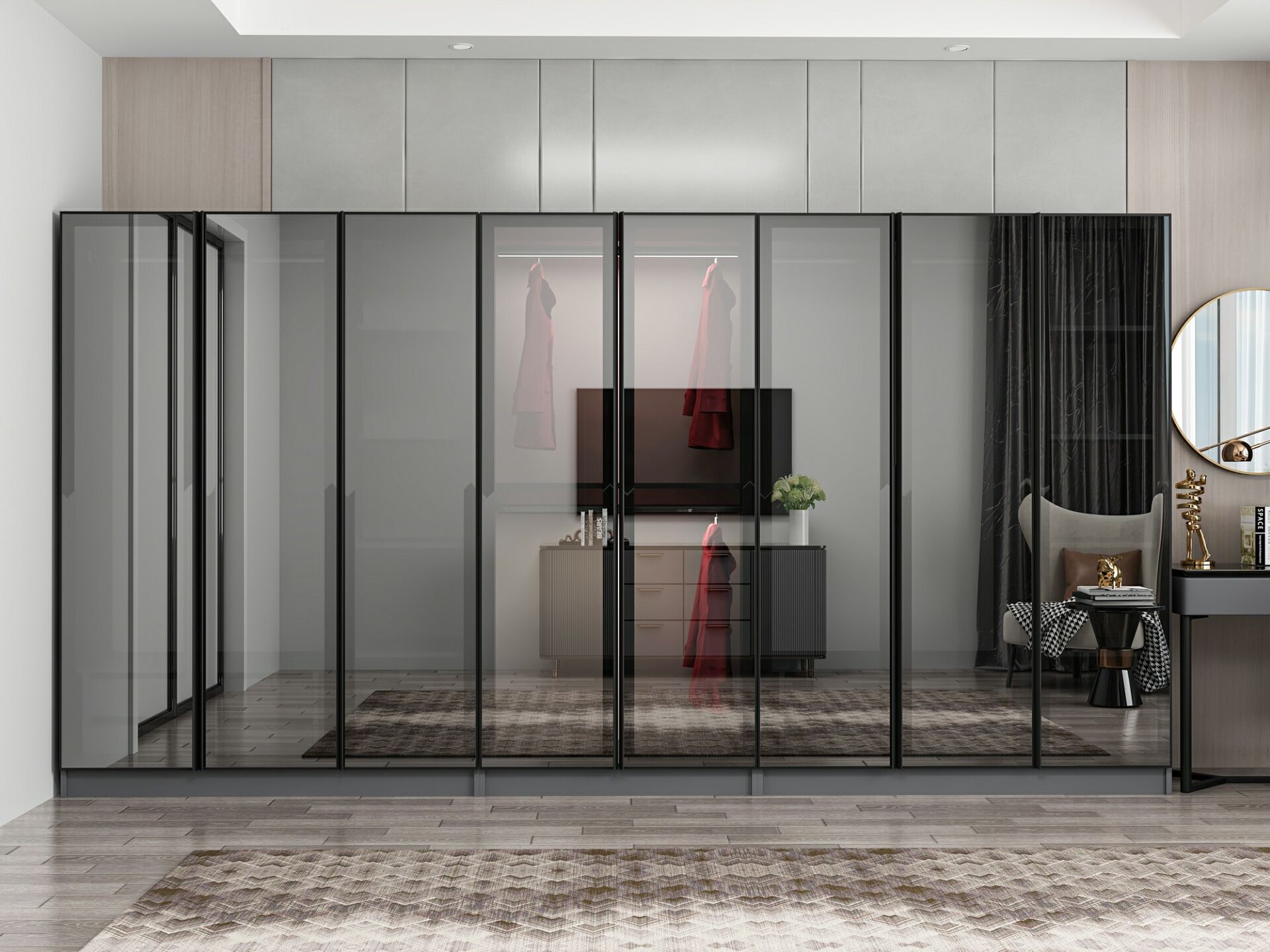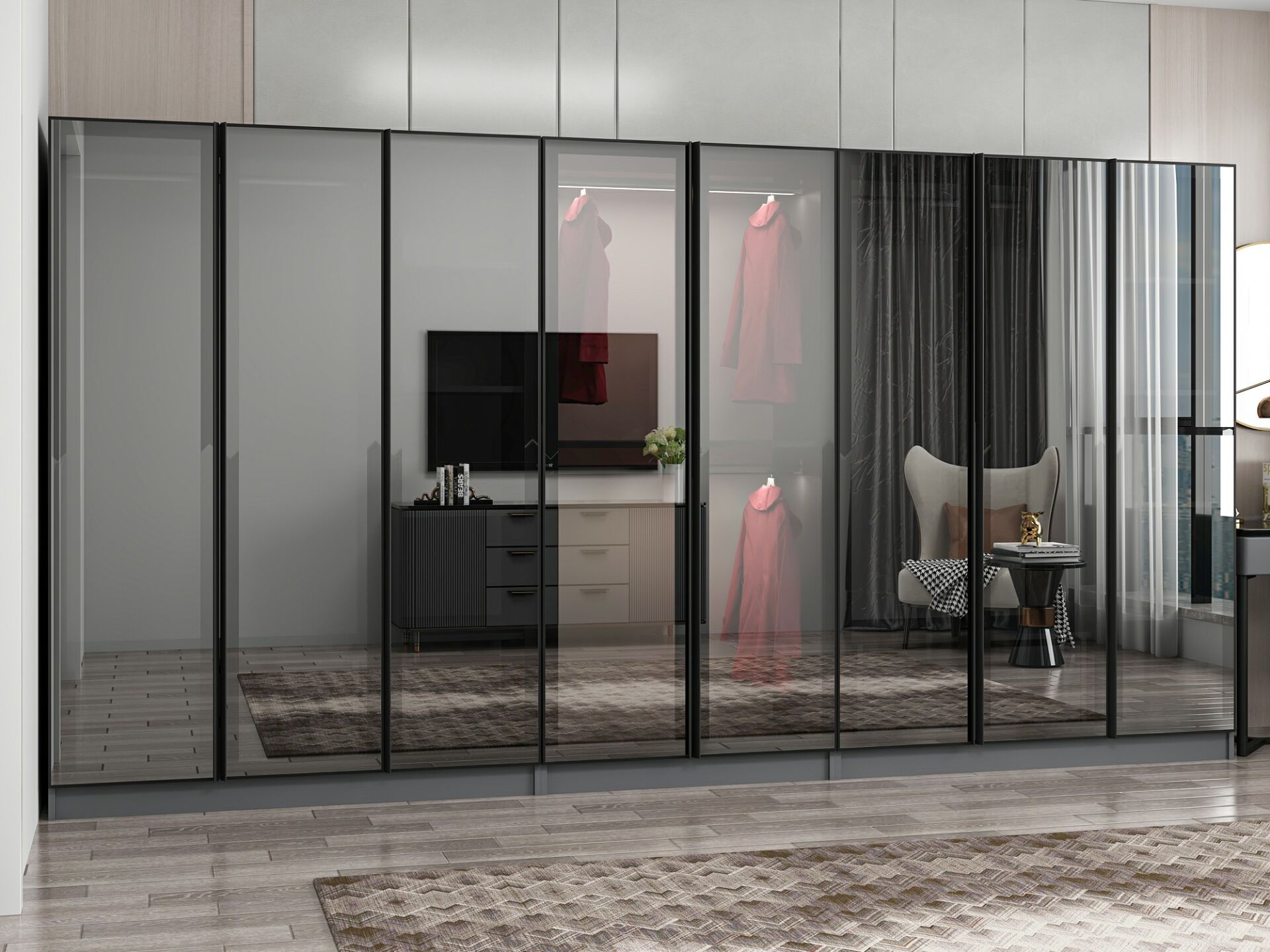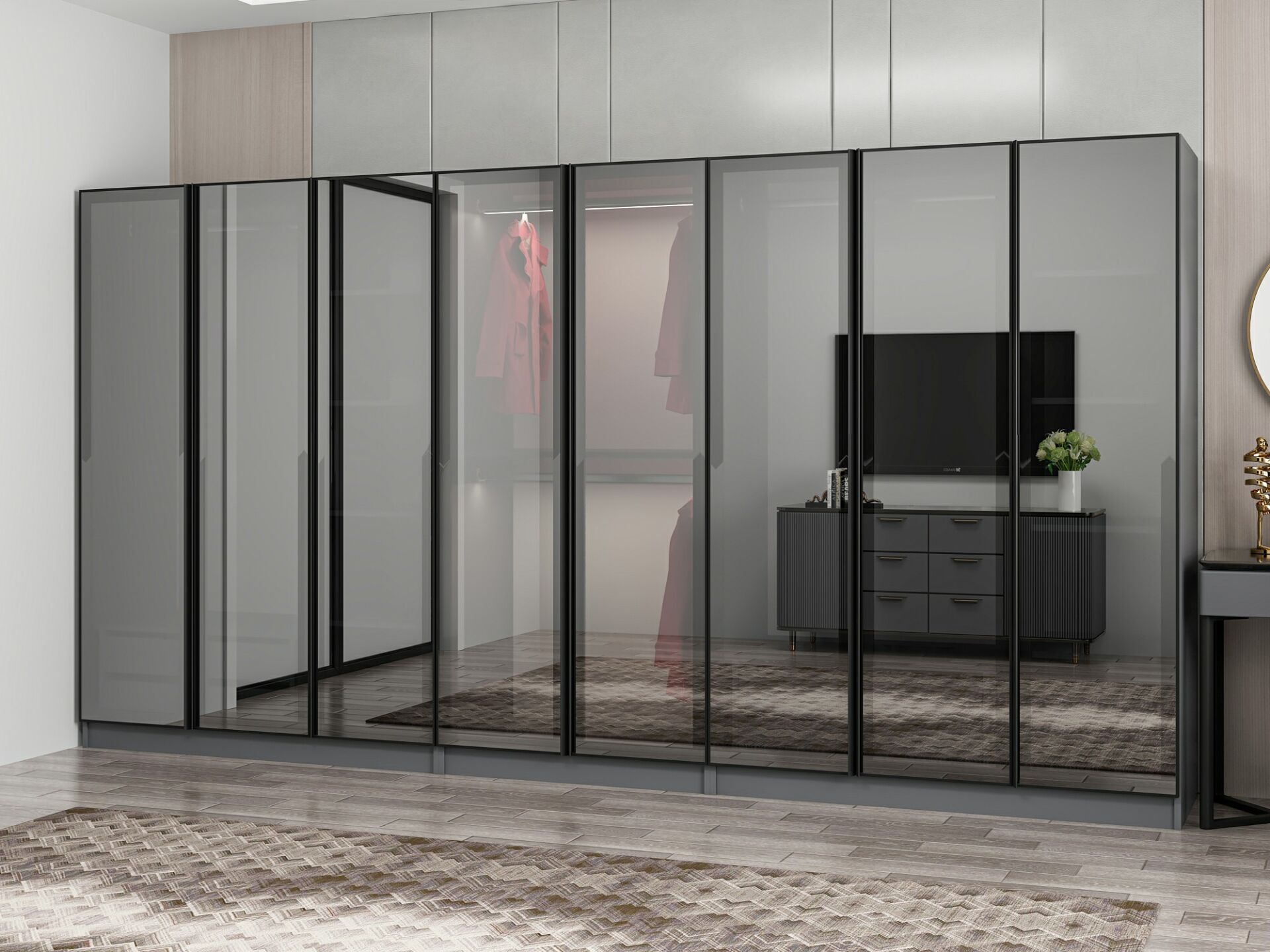 Nisa 8 Kapaklı 4 Çekmece Dolap Antrasit Reflekte Cam