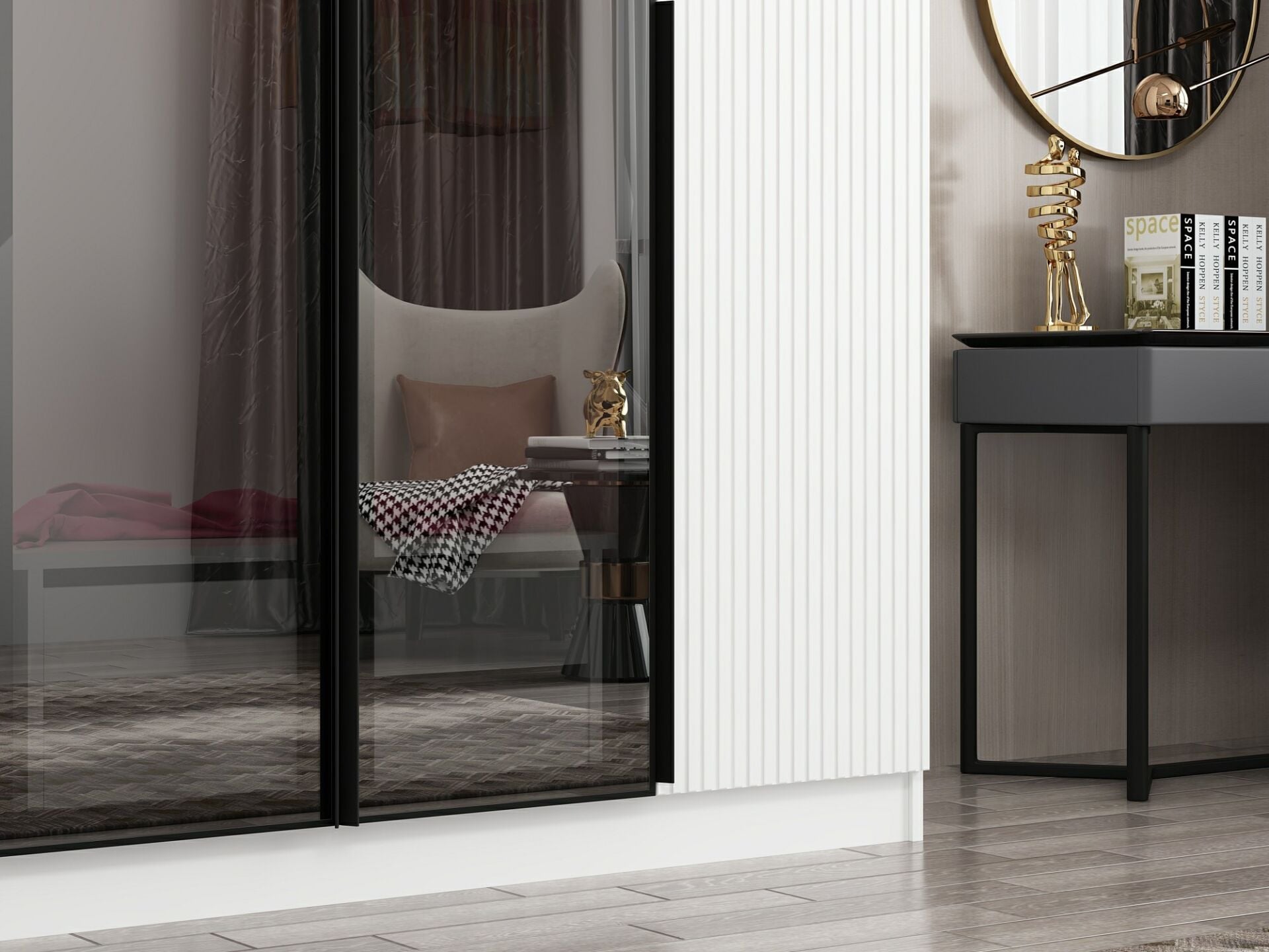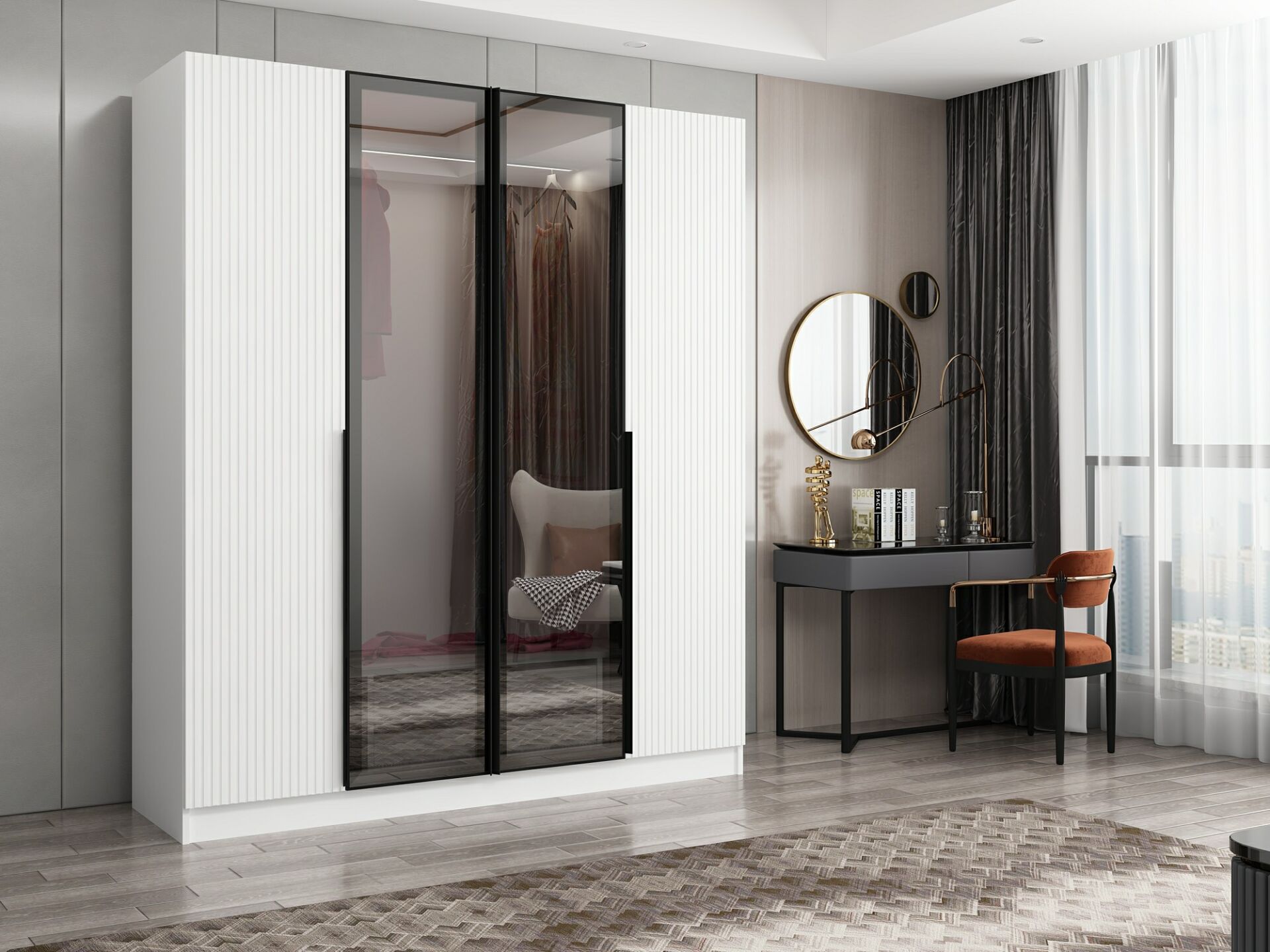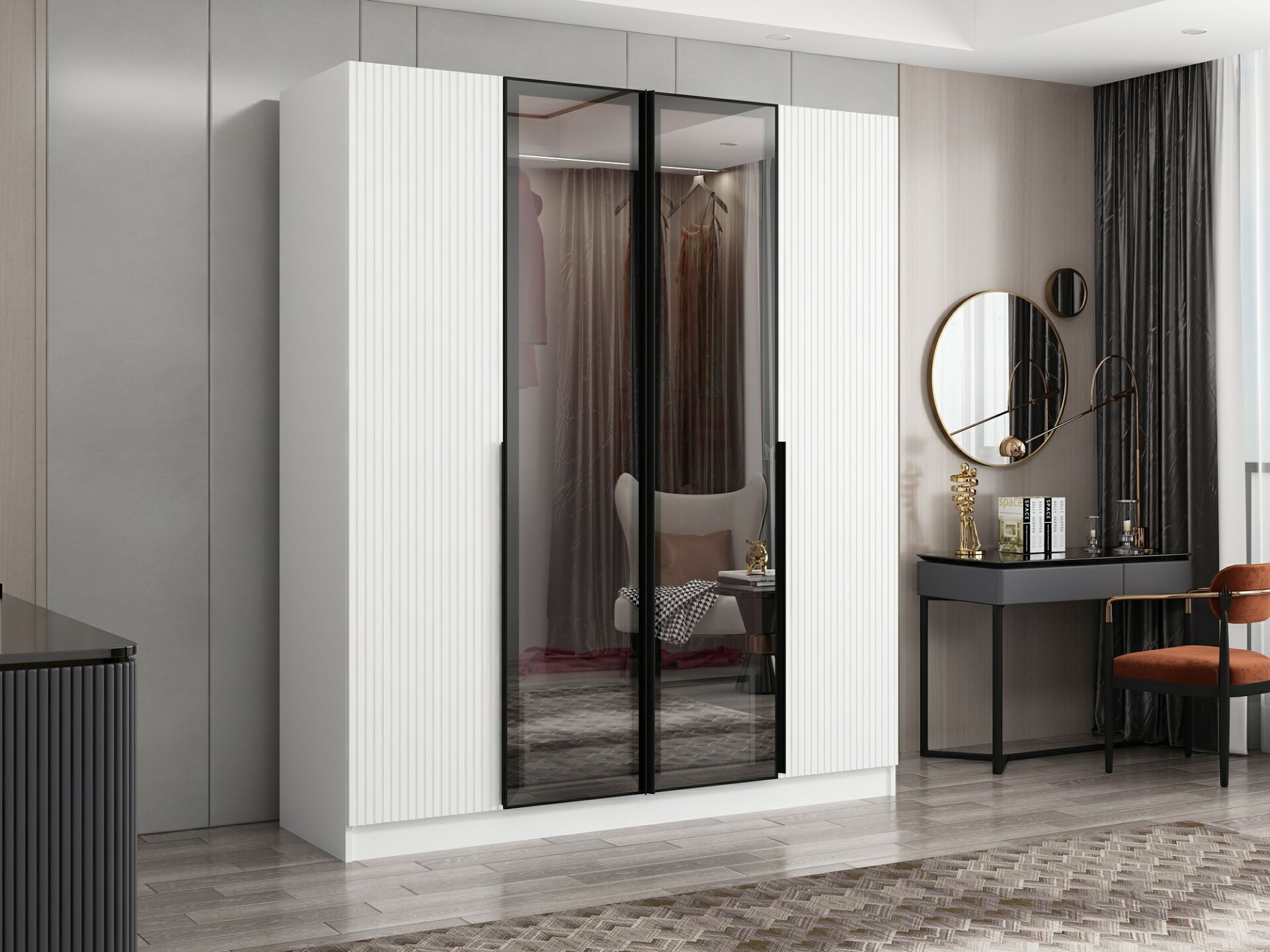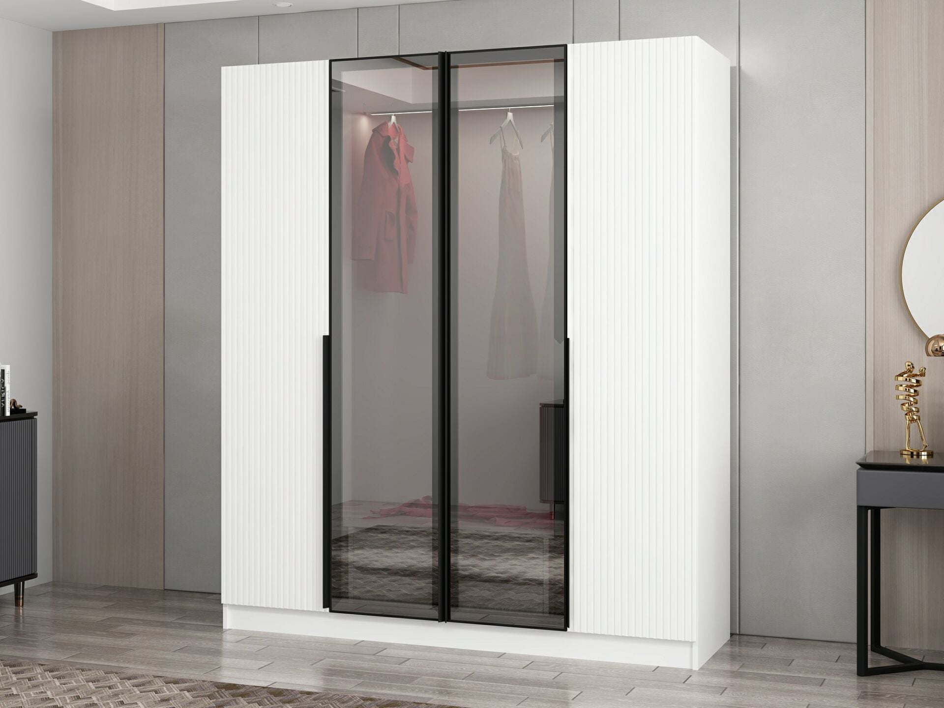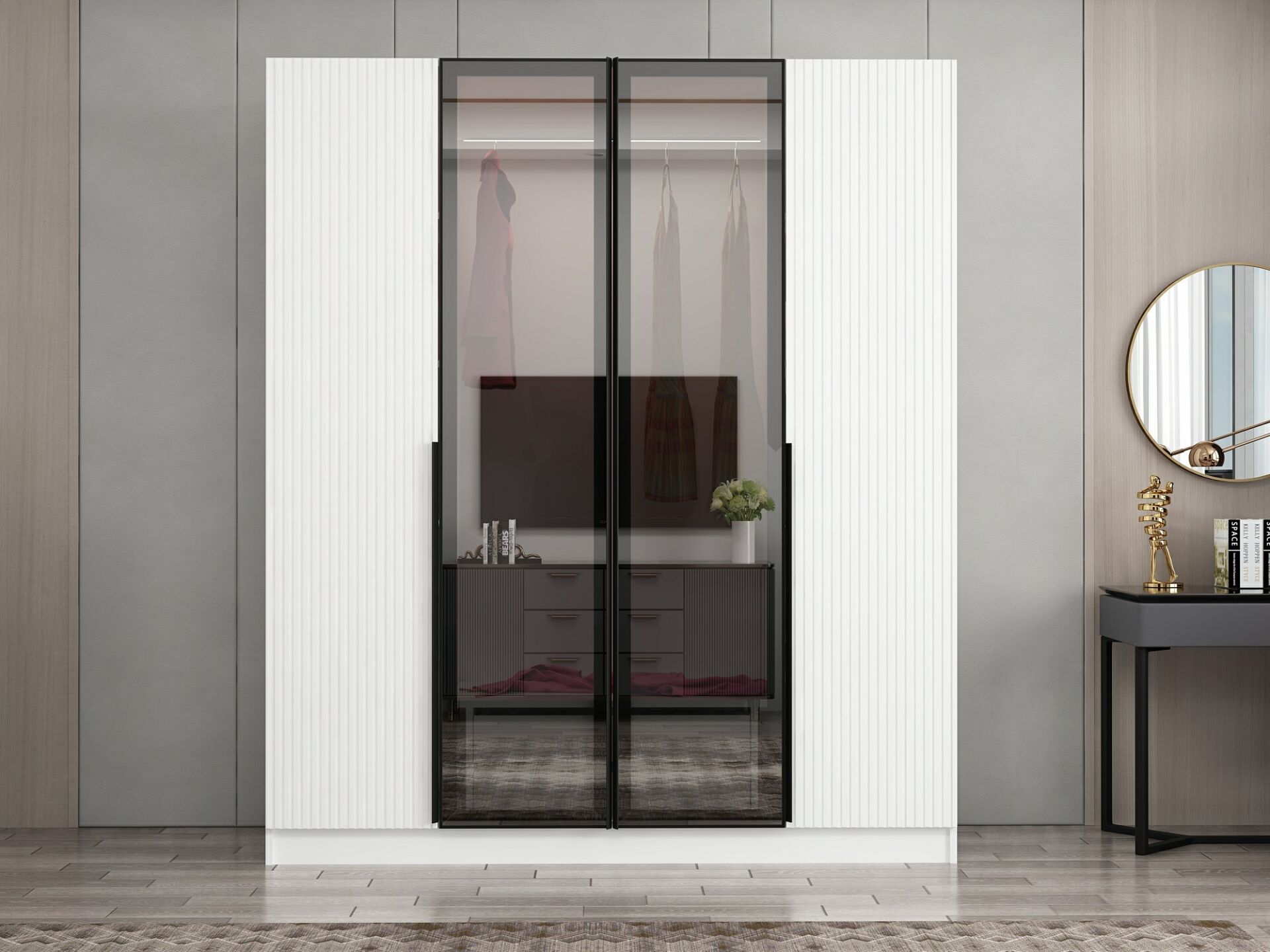 Nisa Plus 4 Kapaklı 2 Çekmece Dolap Beyaz Mebran Reflekte Cam