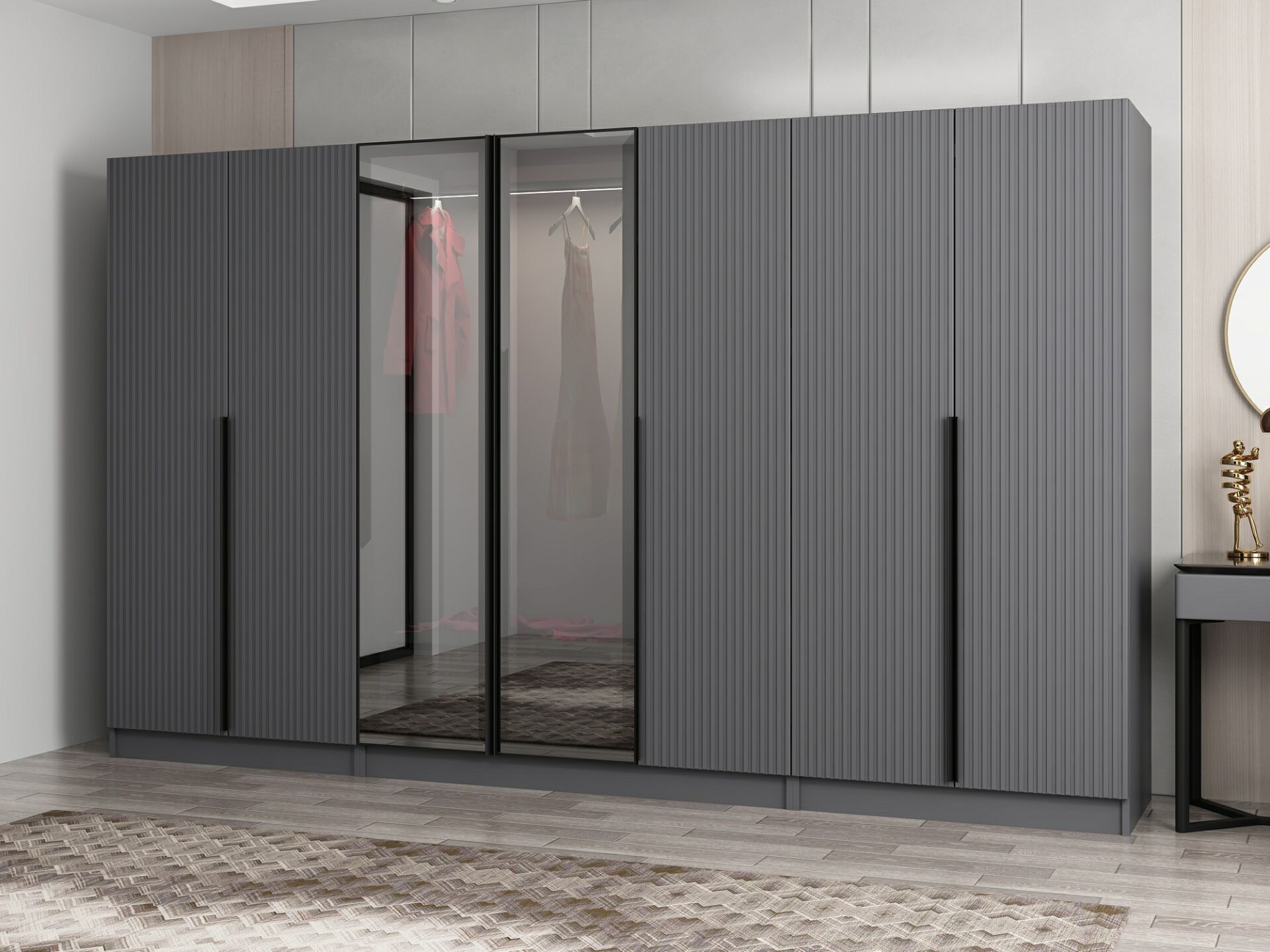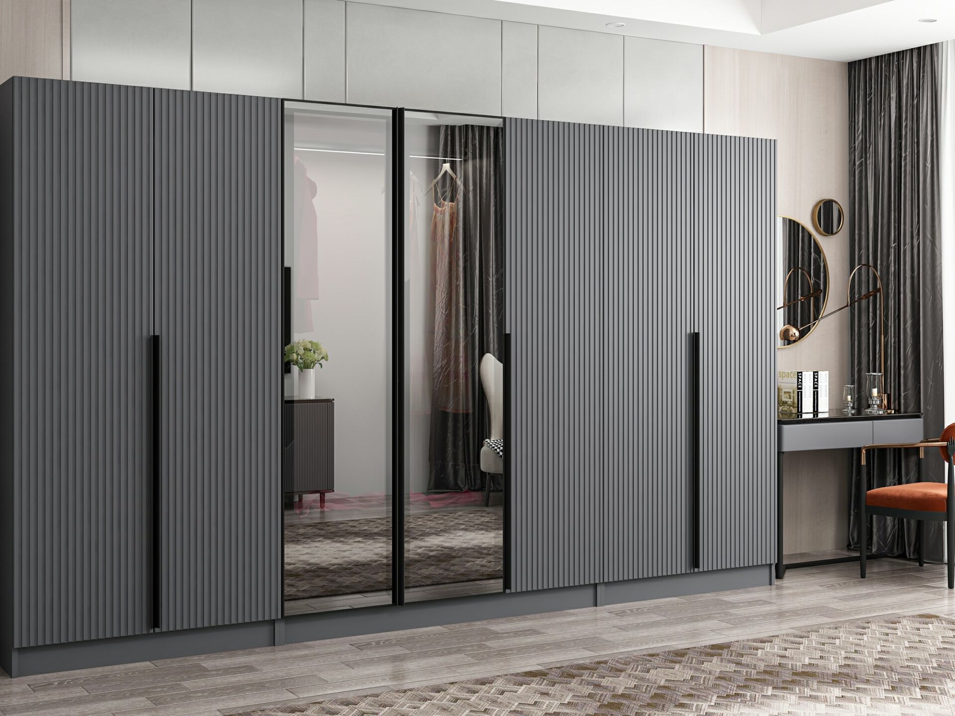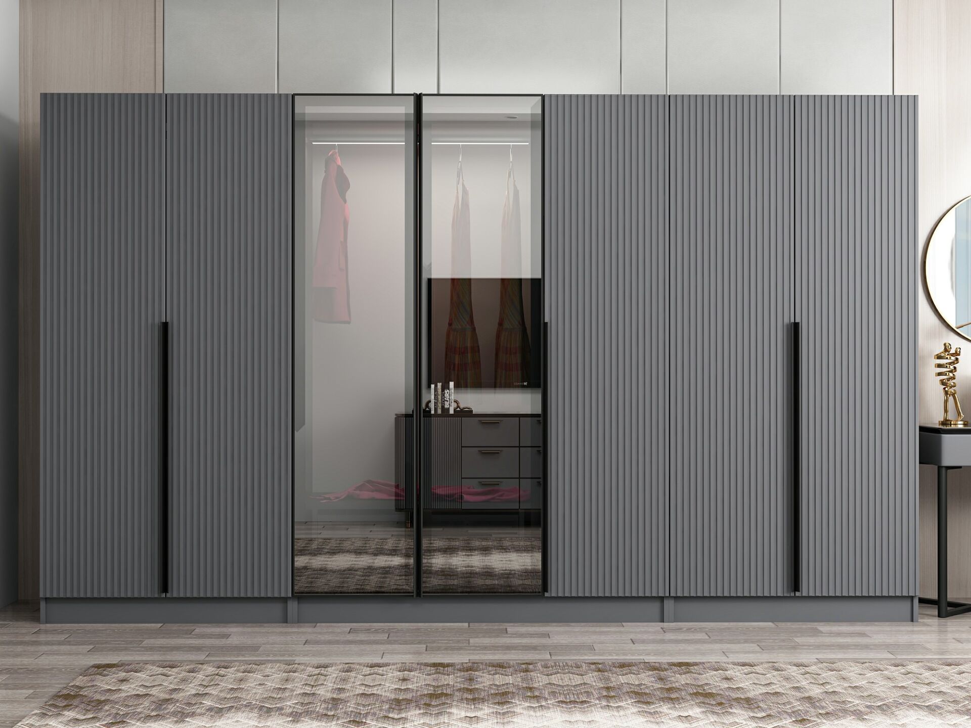 Nisa Plus 7 Kapaklı 2 Çekmece Dolap Antrasit Mebran Reflekte Cam