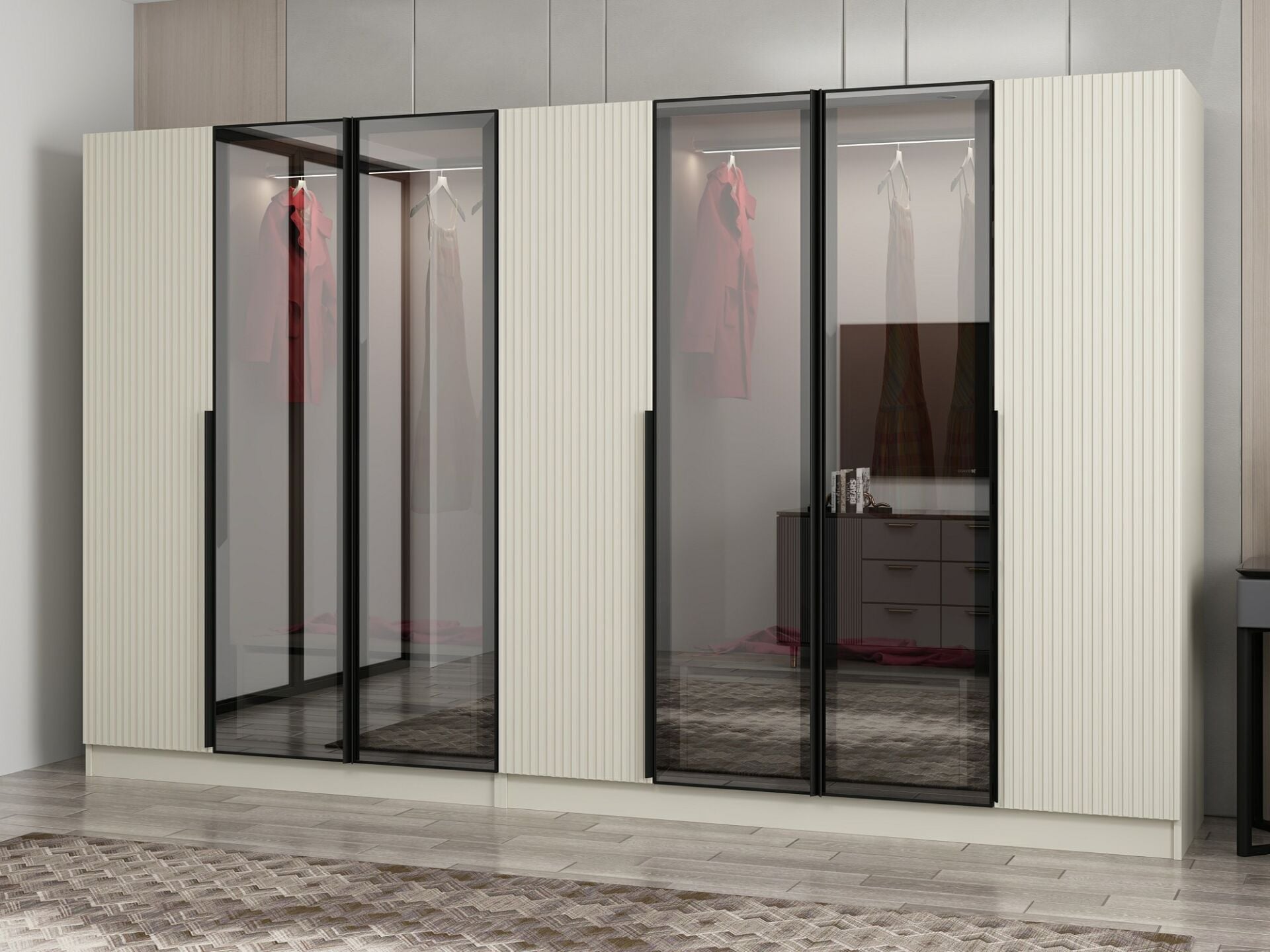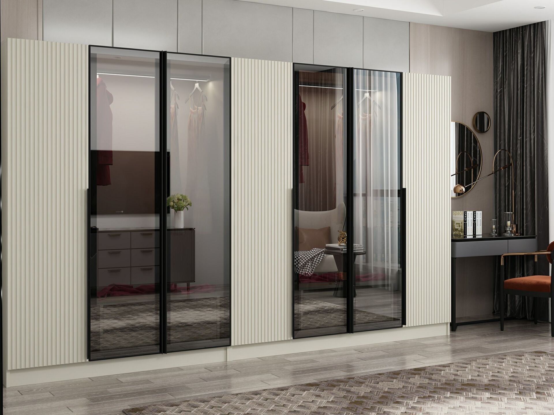 Nisa Plus 7 Kapaklı 4 Çekmece Dolap Kumtaşı Mebran Reflekte Cam