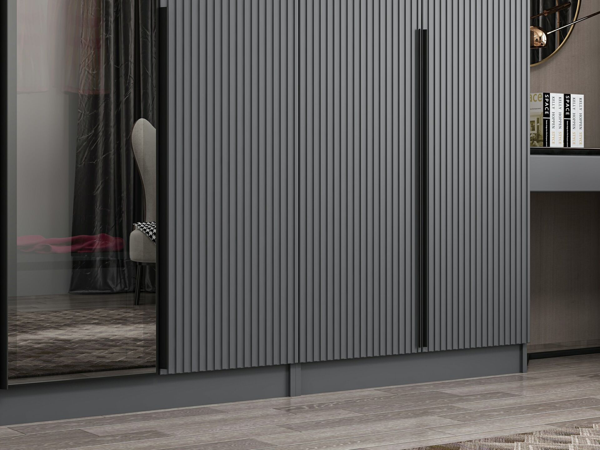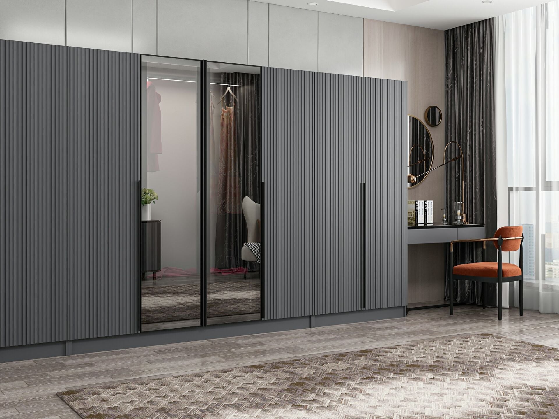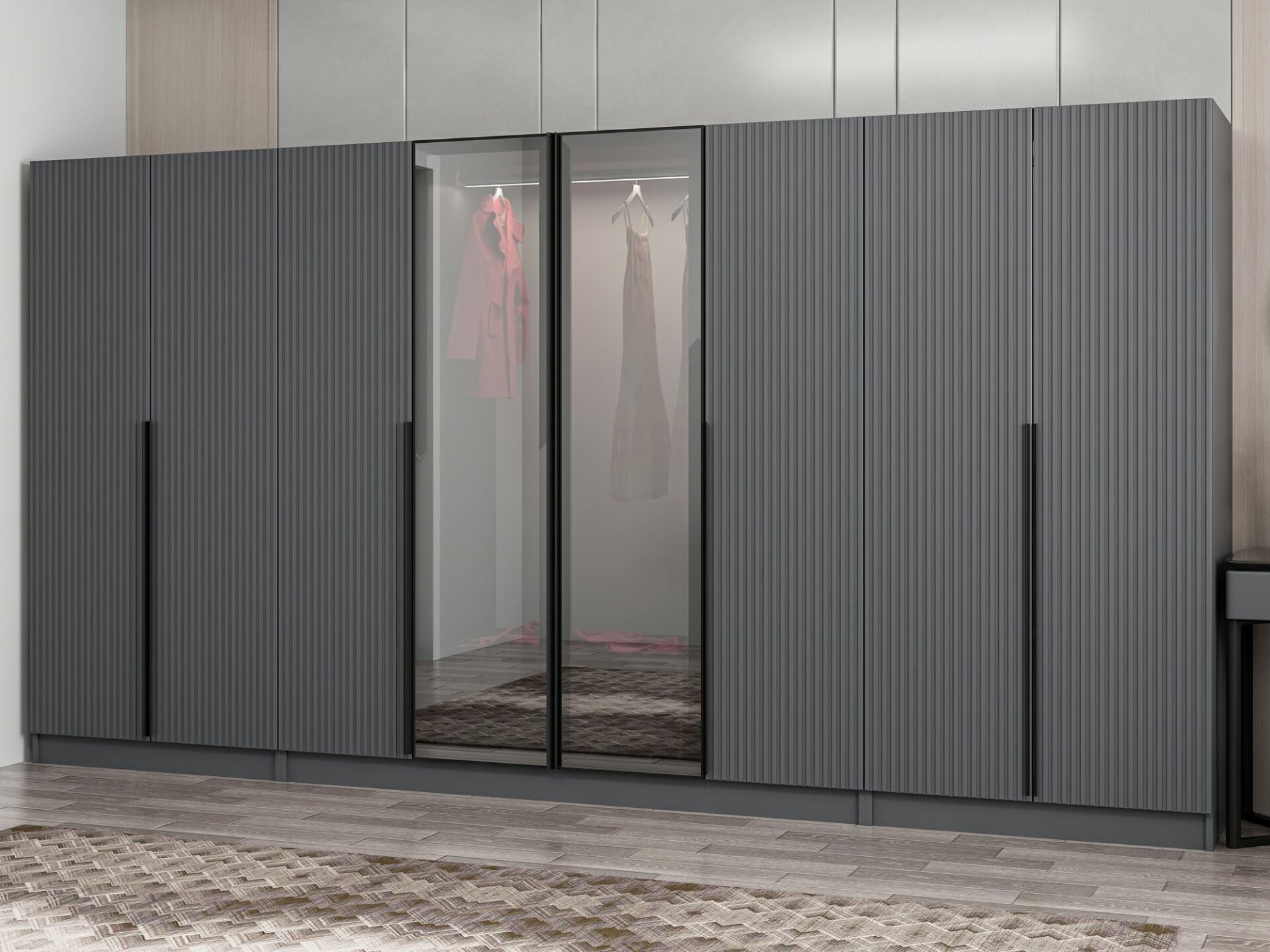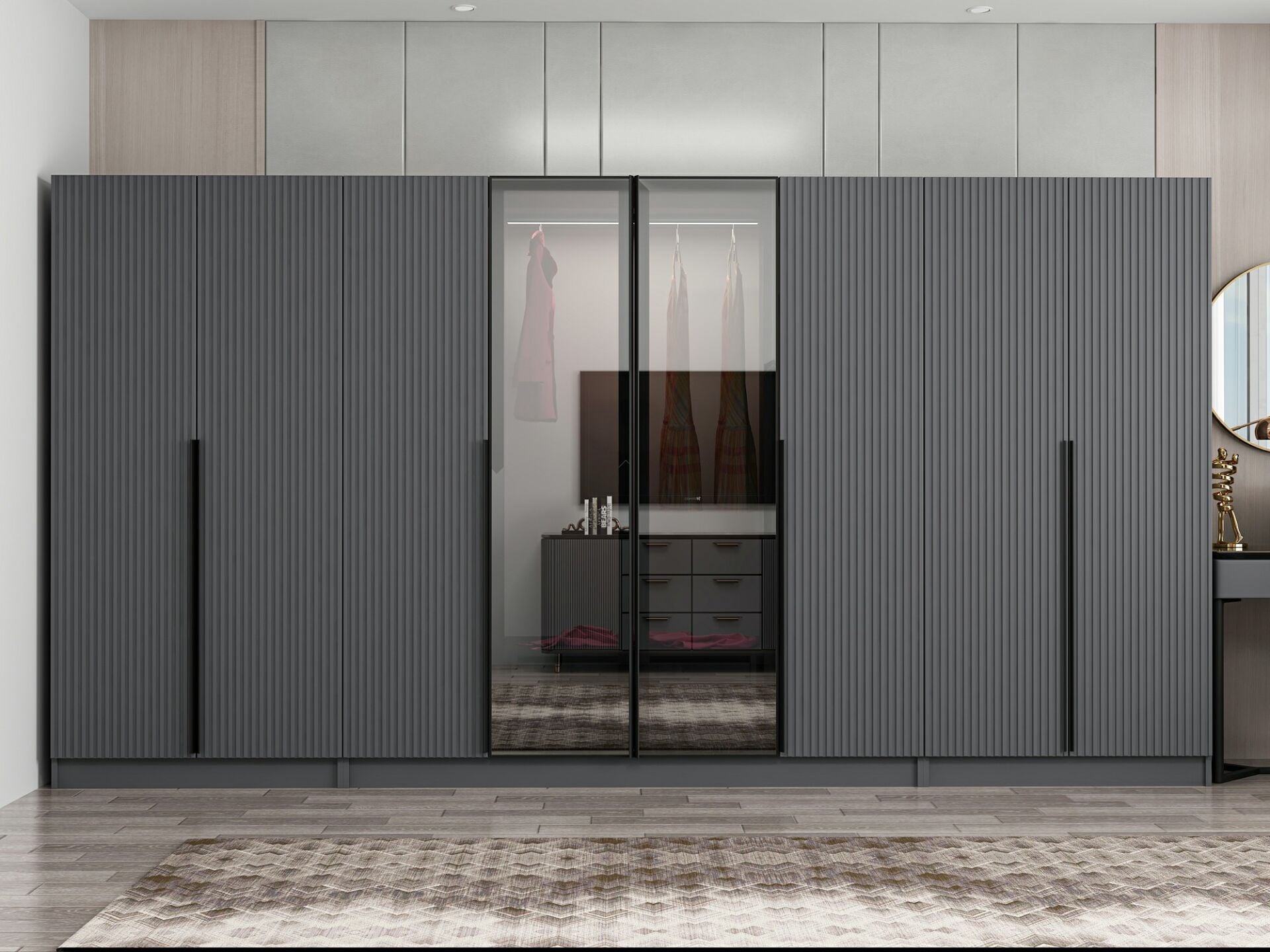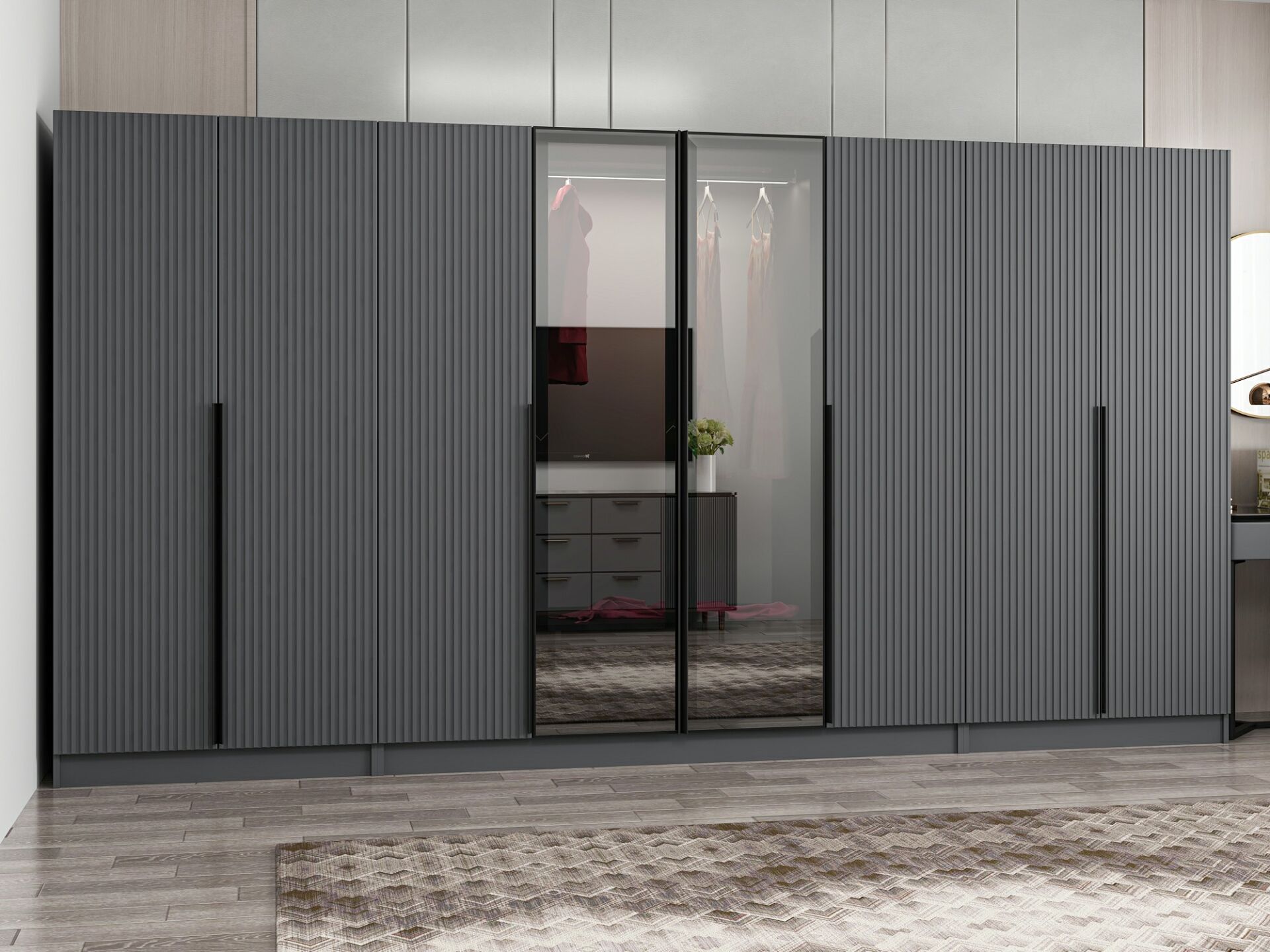Nisa Plus 8 Kapaklı 2 Çekmece Dolap Antrasit Mebran Reflekte Cam