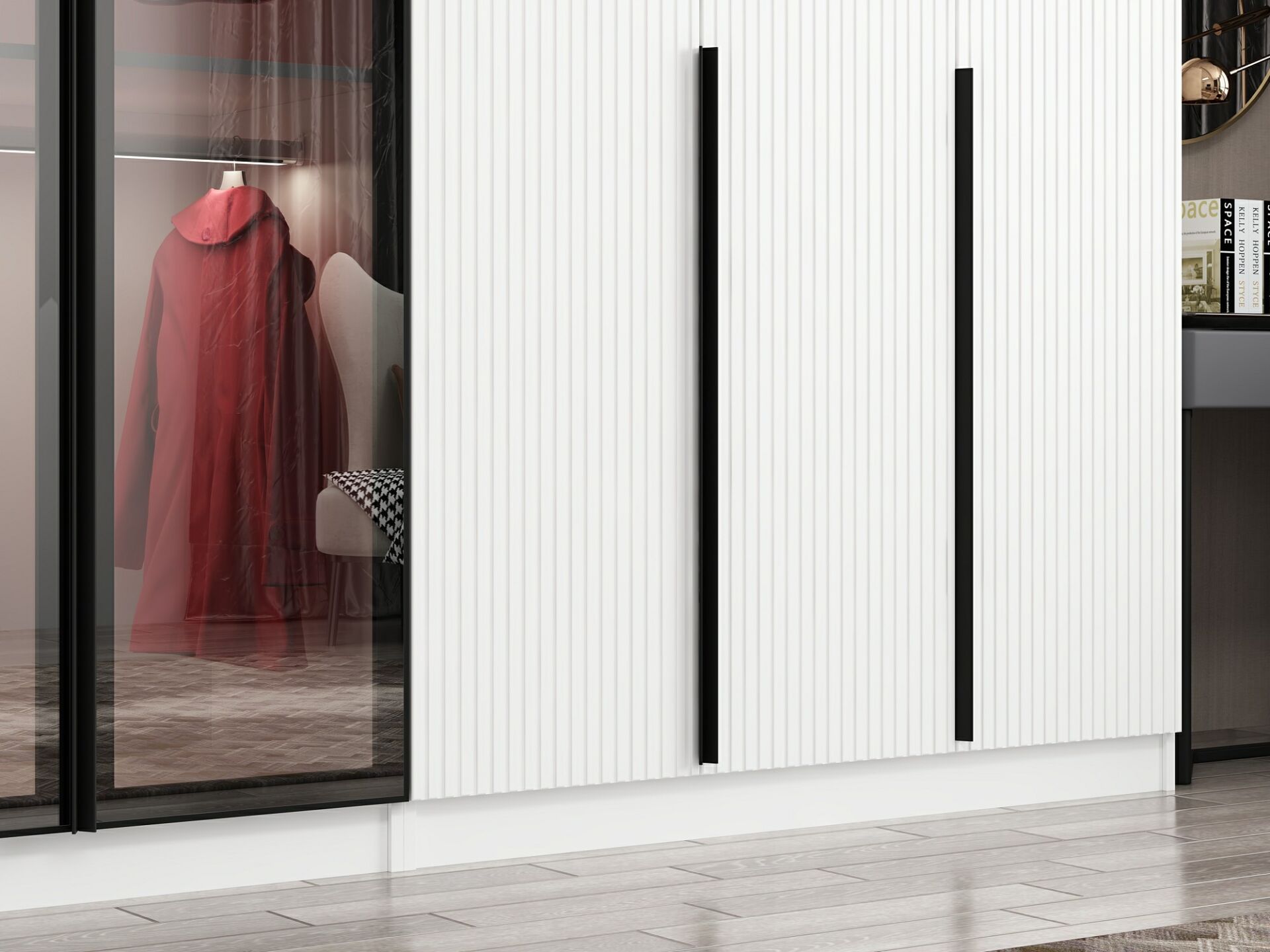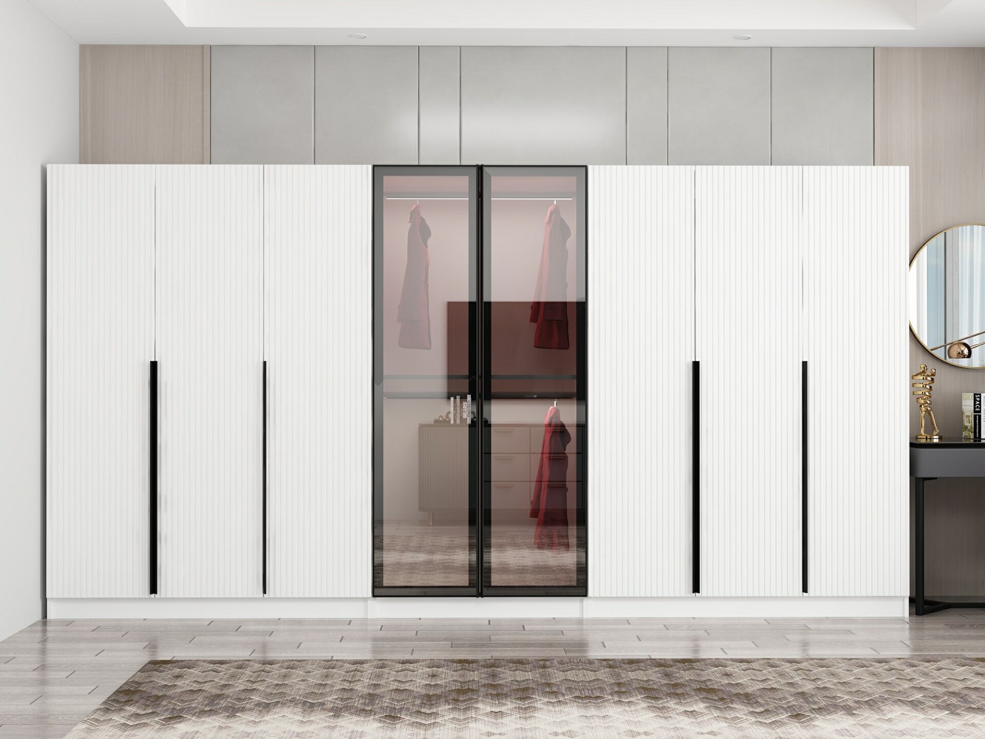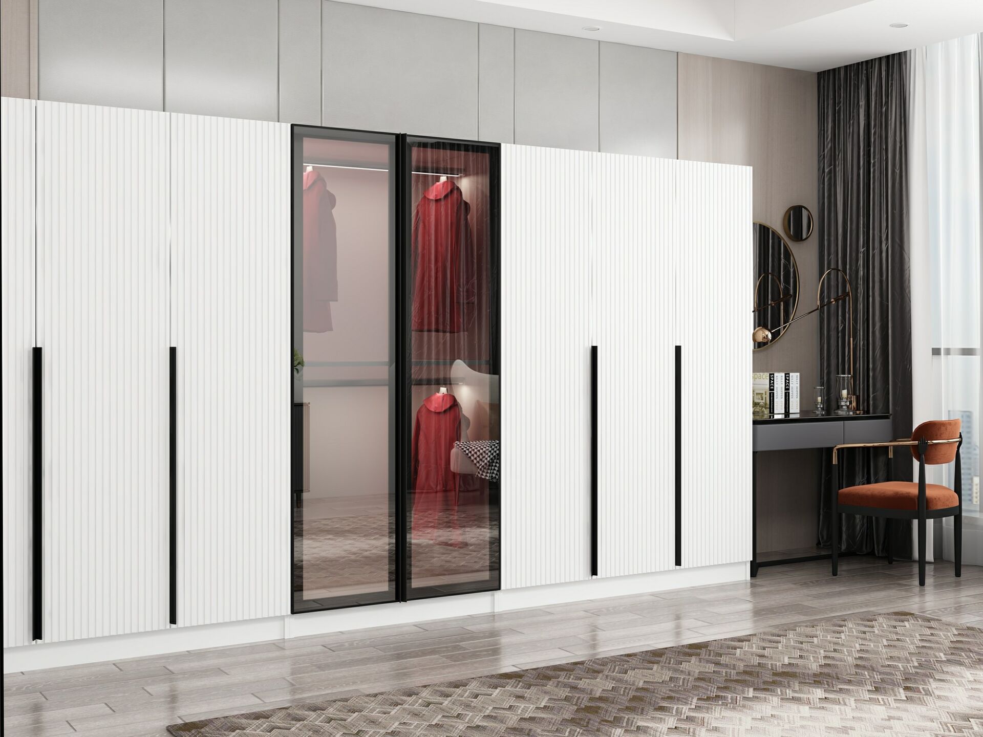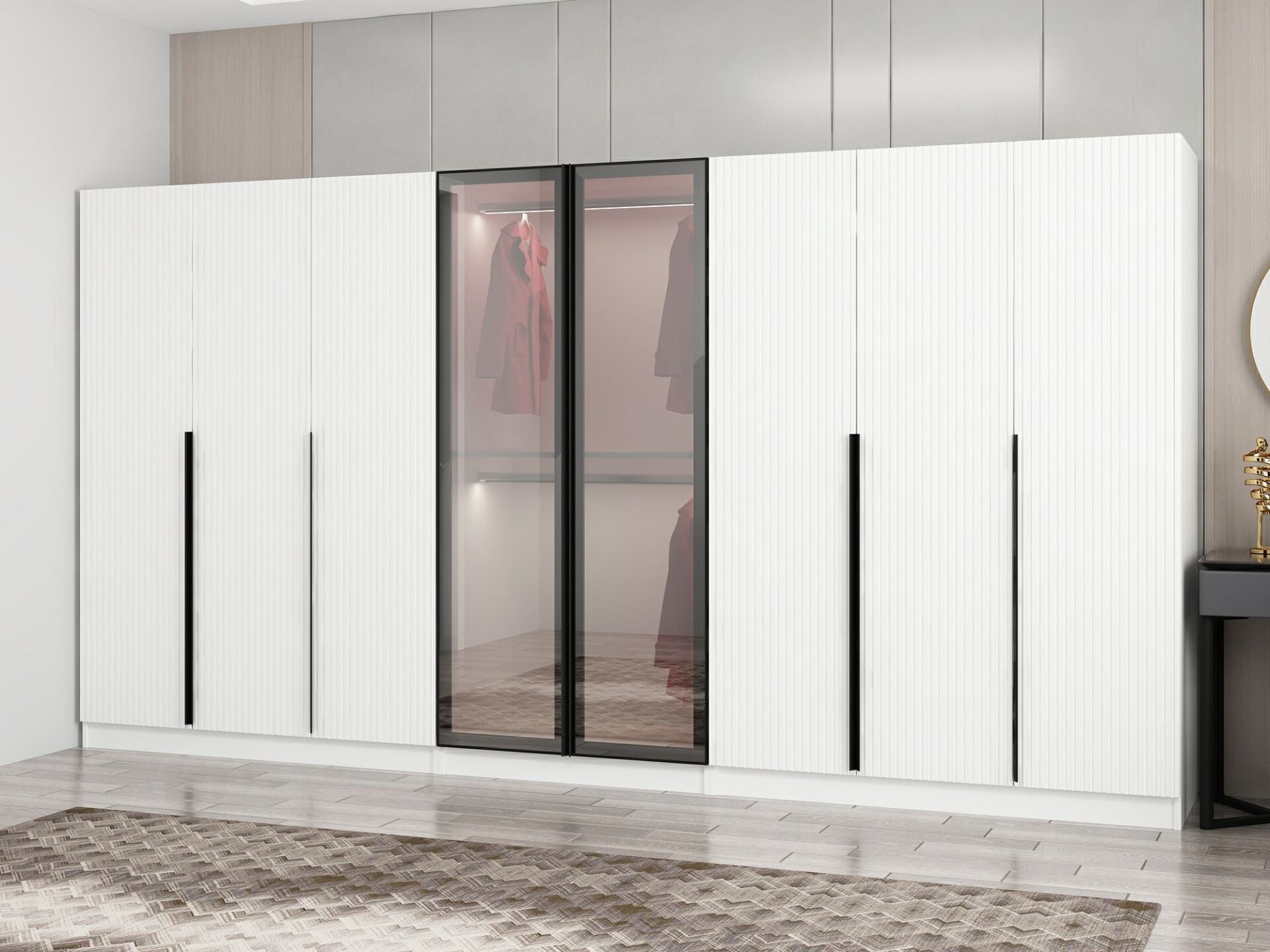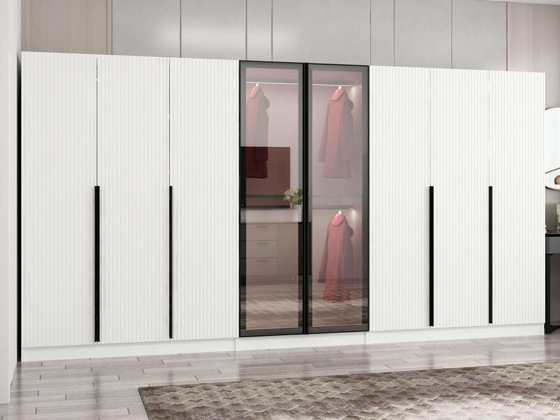 Nisa Plus 8 Kapaklı 4 Çekmece Dolap Beyaz Mebran Reflekte Cam
