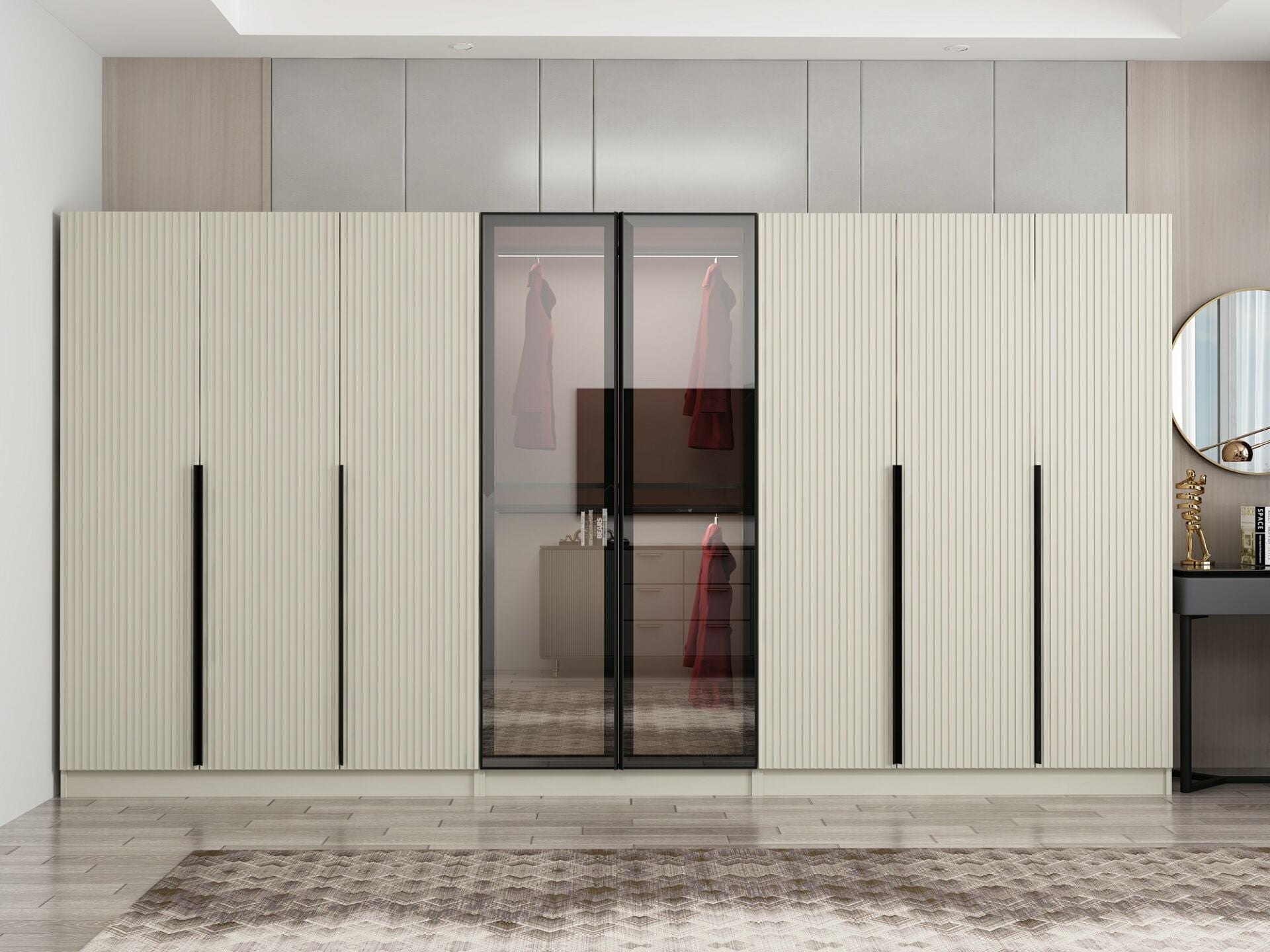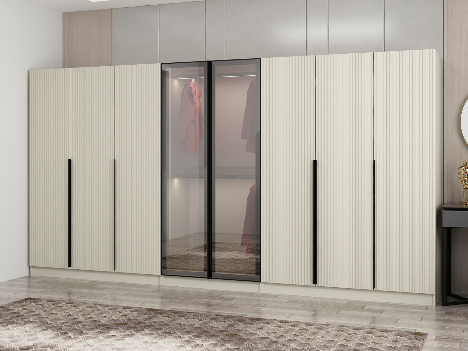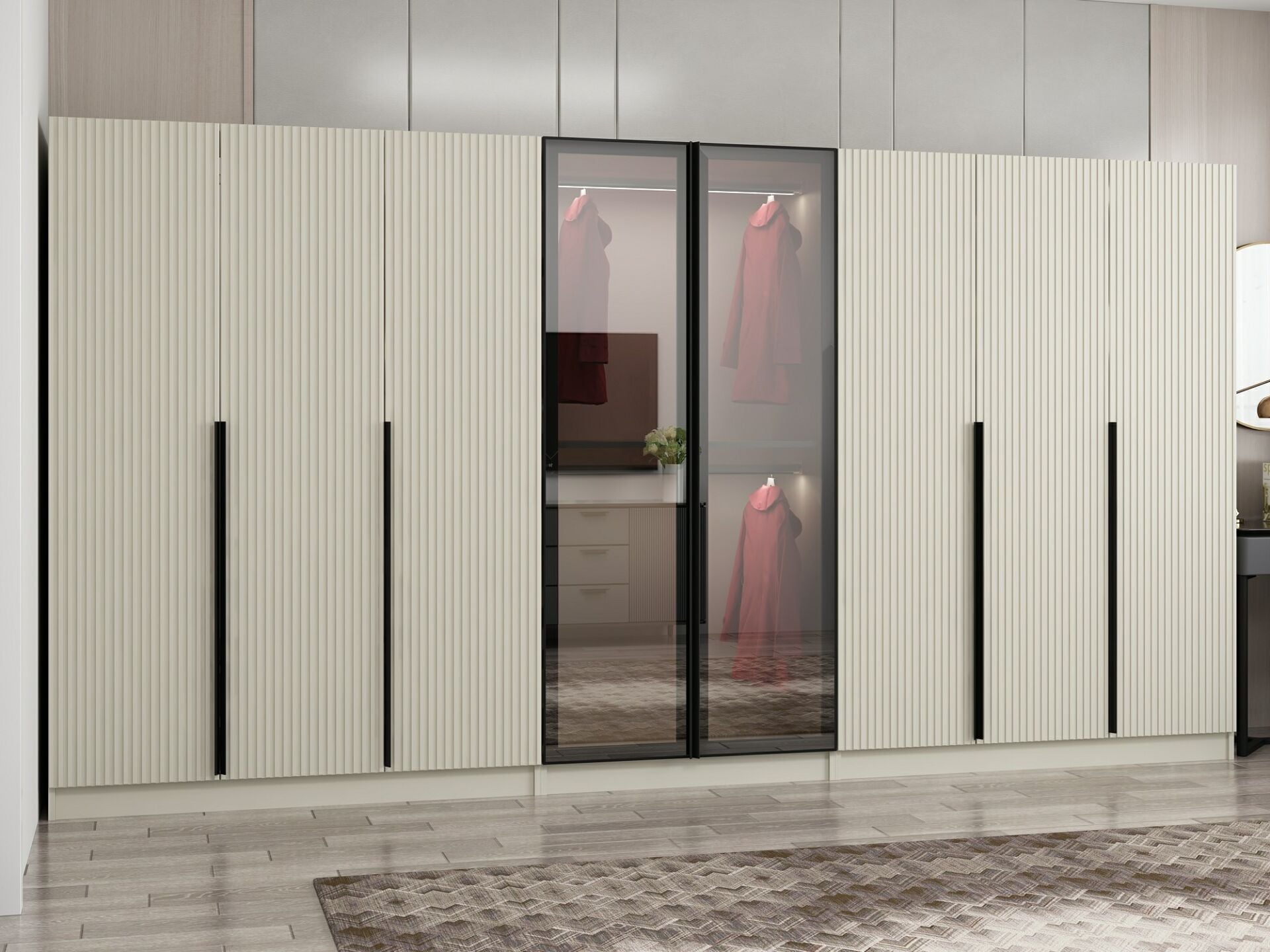 Nisa Plus 8 Kapaklı 4 Çekmece Dolap Kumtaşı Mebran Reflekte Cam
