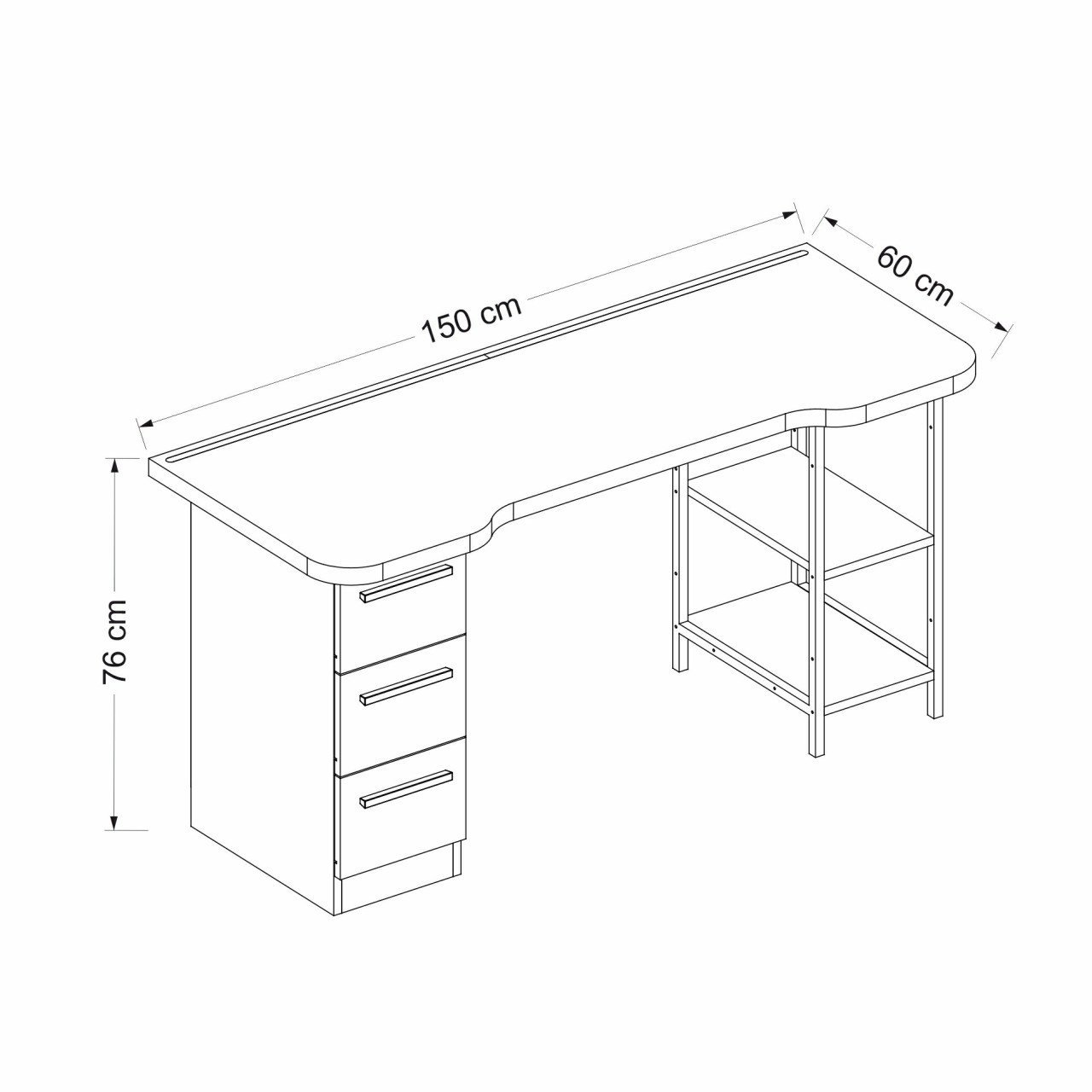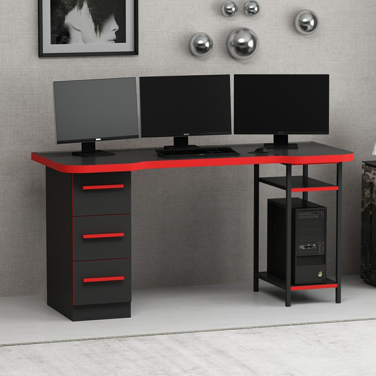 • Geniş masa yüzeyi: Bilgisayar ve oyun ekipmanları için ideal alan.