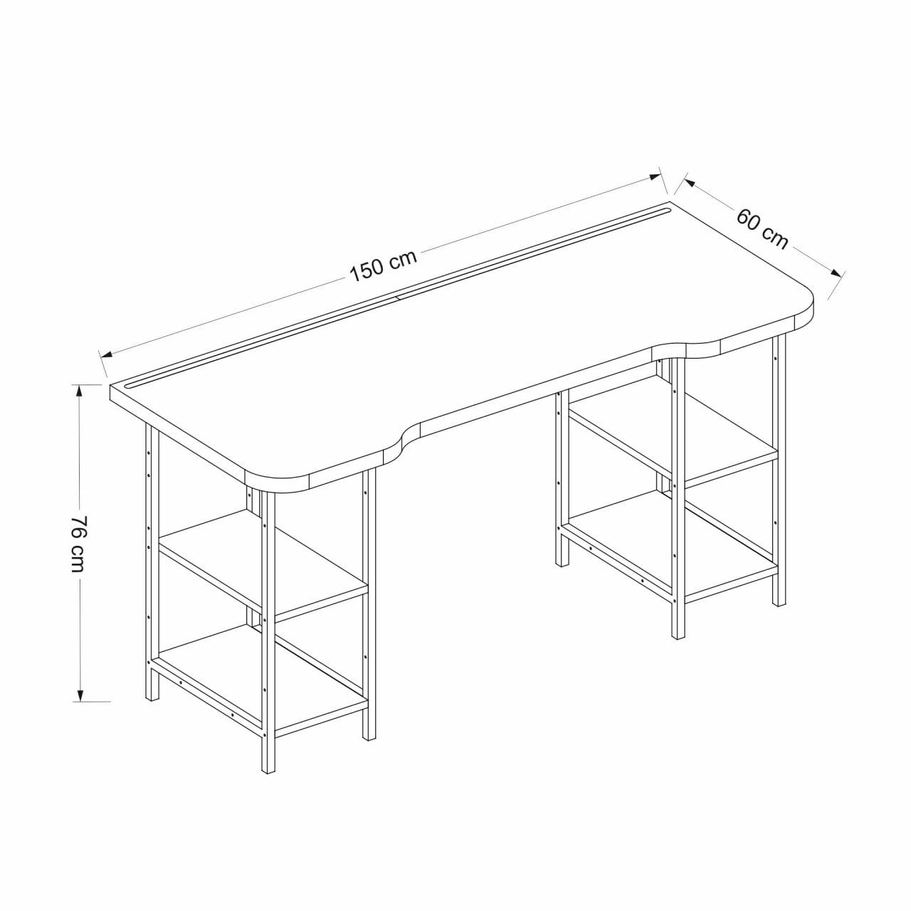 • Geniş masa yüzeyi: Bilgisayar ve oyun ekipmanları için ideal alan.