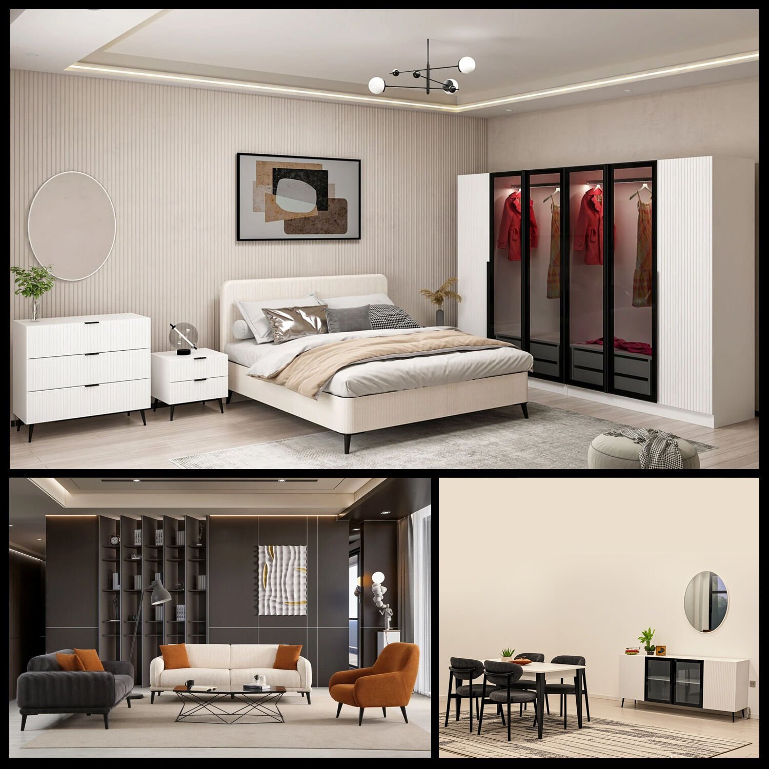 Modern tasarım anlayışının sadelikle buluştuğu Plus Düğün Paketi - Beyaz, yatak odası, yemek odası ve oturma odasında kusursuz bir bütünlük sunuyor. Beyaz rengin ferah ve zamansız etkisi, yaşam alanlarınıza aydınlık bir atmosfer kazandırırken, setin çağdaş çizgileriyle evinizde dengeli bir estetik oluşturuyor.