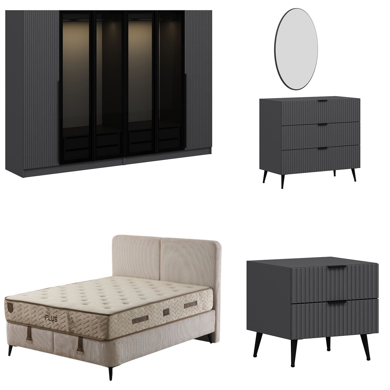 Plus Yatak Odası Takımı - Antrasit