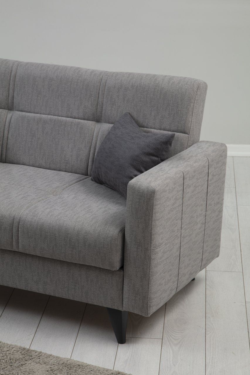 26 DNS oturma süngeri ve 22 DNS sırt süngeri, dengeli sertlikte rahat bir oturum deneyimi sunar. Sandıklı yapısı, depolama ihtiyacınızı karşılayarak yaşam alanınızı düzenli tutmanıza yardımcı olur. Tek kişilik yatak olabilme özelliği ile fonksiyonellik artırılır.