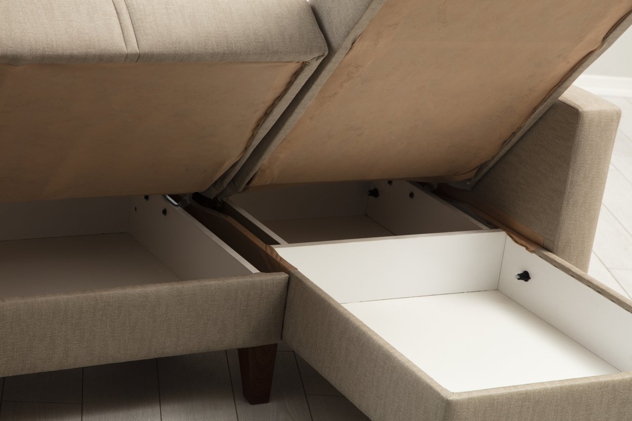 Polya Sandıklı Bazalı L Köşe Koltuk Bej