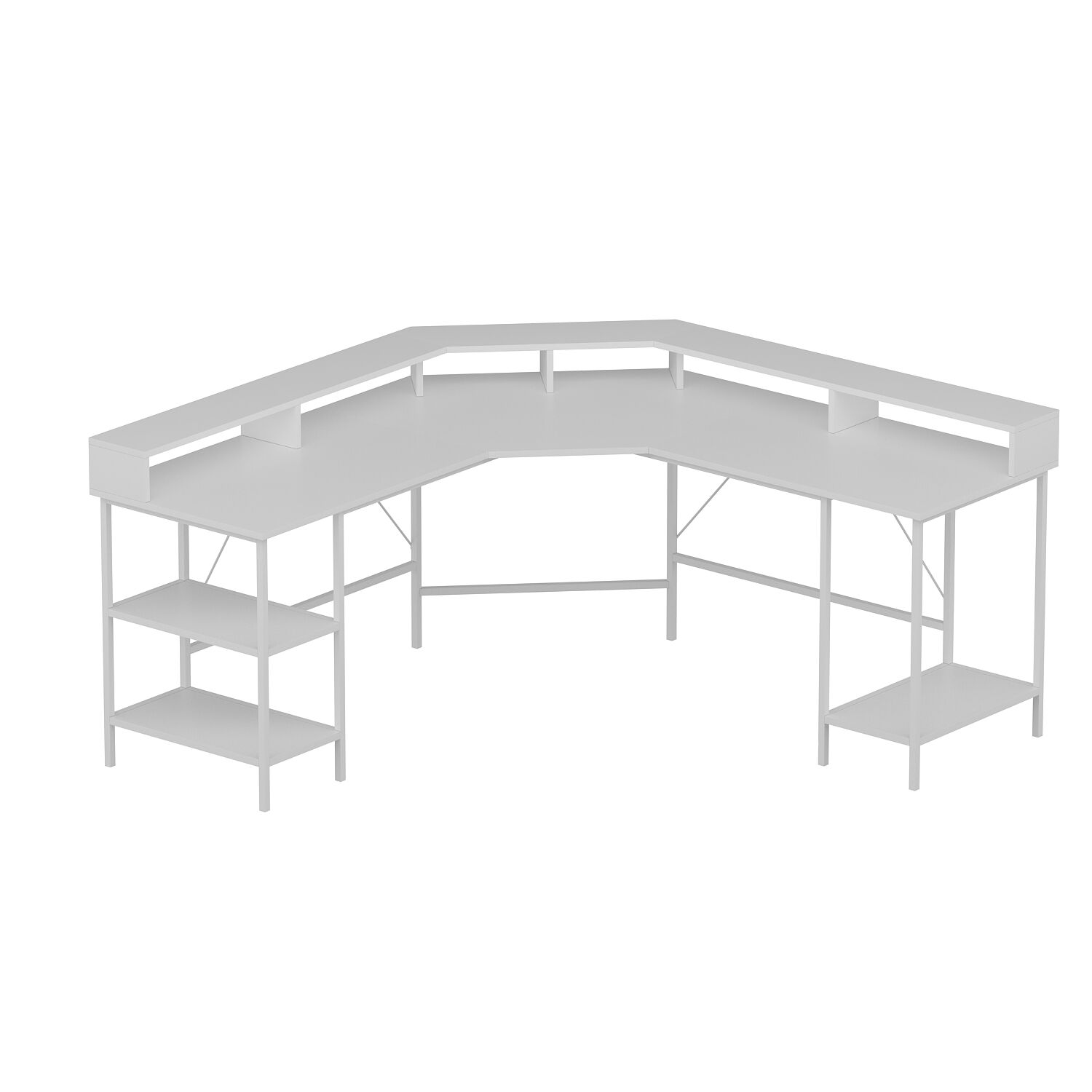 Power Monitör Raflı L Köşe Çalışma Masası - Beyaz
