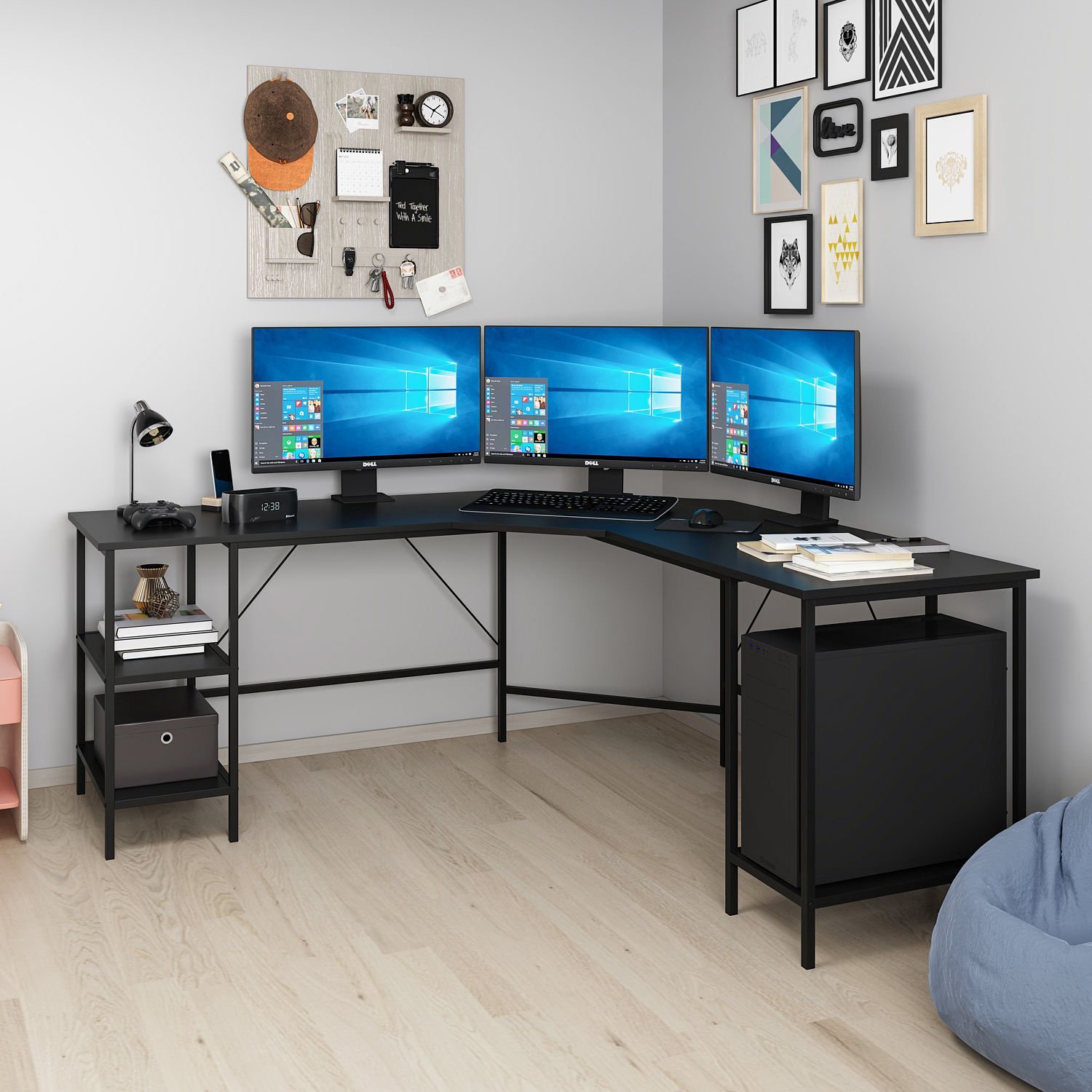 Power Raflı L Köşe Çalışma Masası - Siyah