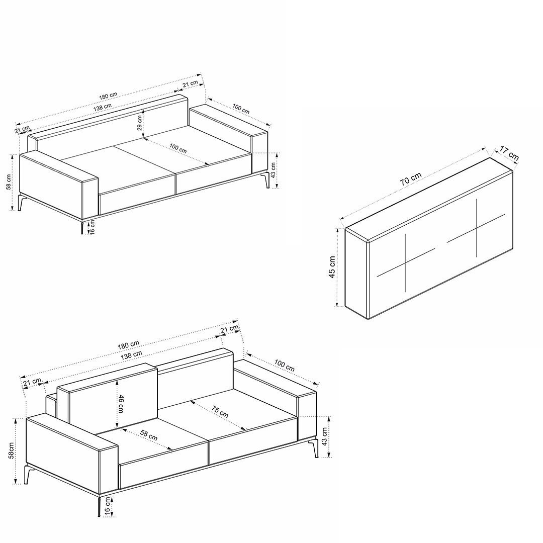 - Geniş ölçüler: 180 cm genişlik, 100 cm derinlik, 89 cm yükseklik.