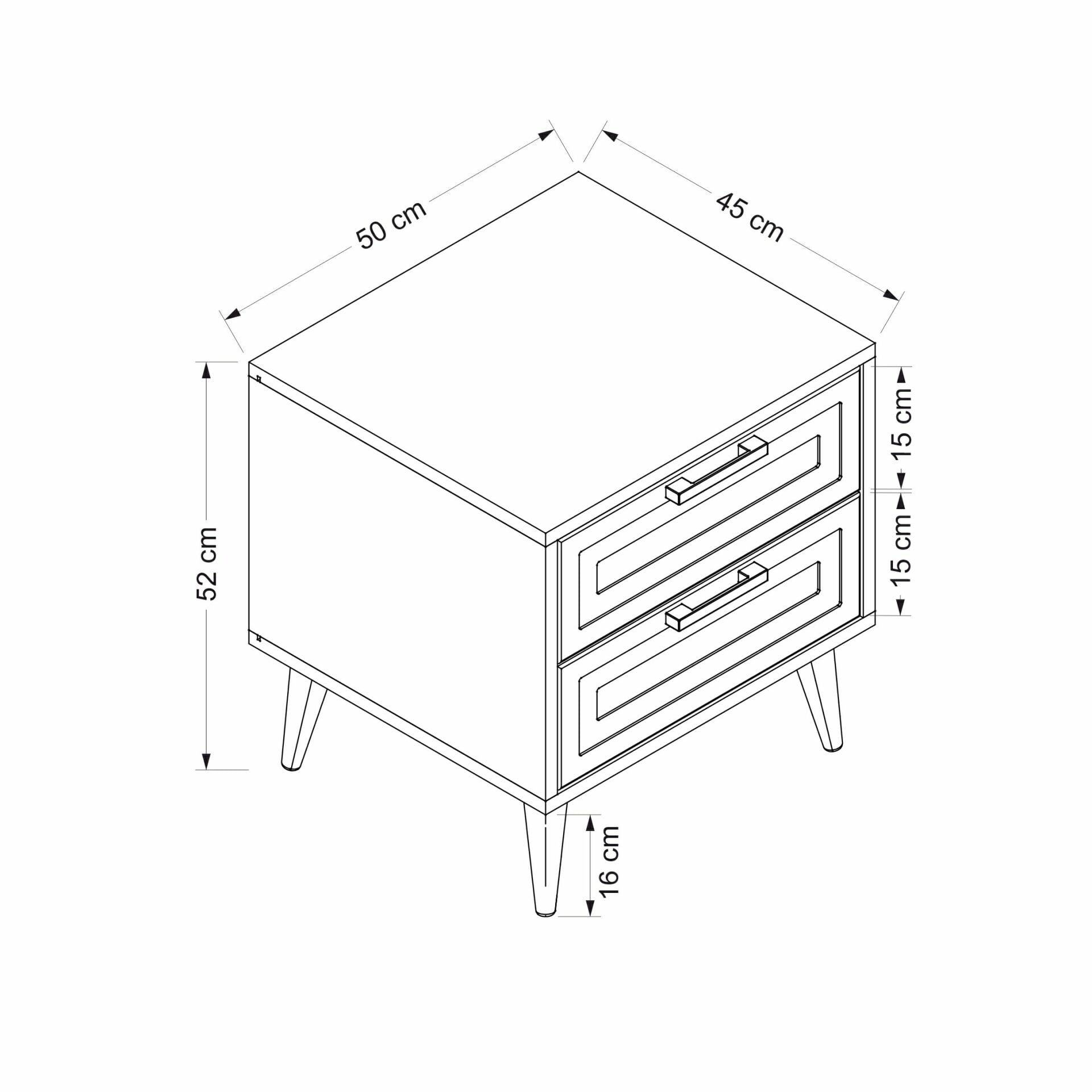 Şık ve modern tasarımıyla odanıza zarif bir dokunuş katan Prime Komodin, Kumtaşı rengiyle sıcak ve estetik bir görünüm sunar. Ayaklı yapısı ve 16 cm yüksekliğindeki ayakları sayesinde odada dengeli bir duruş sağlar ve temizlik kolaylığı sağlar. 50 cm genişlik, 45 cm derinlik ve 52 cm yükseklik ölçüleriyle yatak odasında ideal kullanım alanı sunar. Fonksiyonel iki çekmecesi, eşyalarınızı düzenli ve kolay erişilebilir şekilde saklamanızı sağlar. Modern tasarımı ve zarif detaylarıyla her dekorasyon tarzına uyum gösterir. Minimalist çizgileri, odanıza çağdaş bir hava katar.