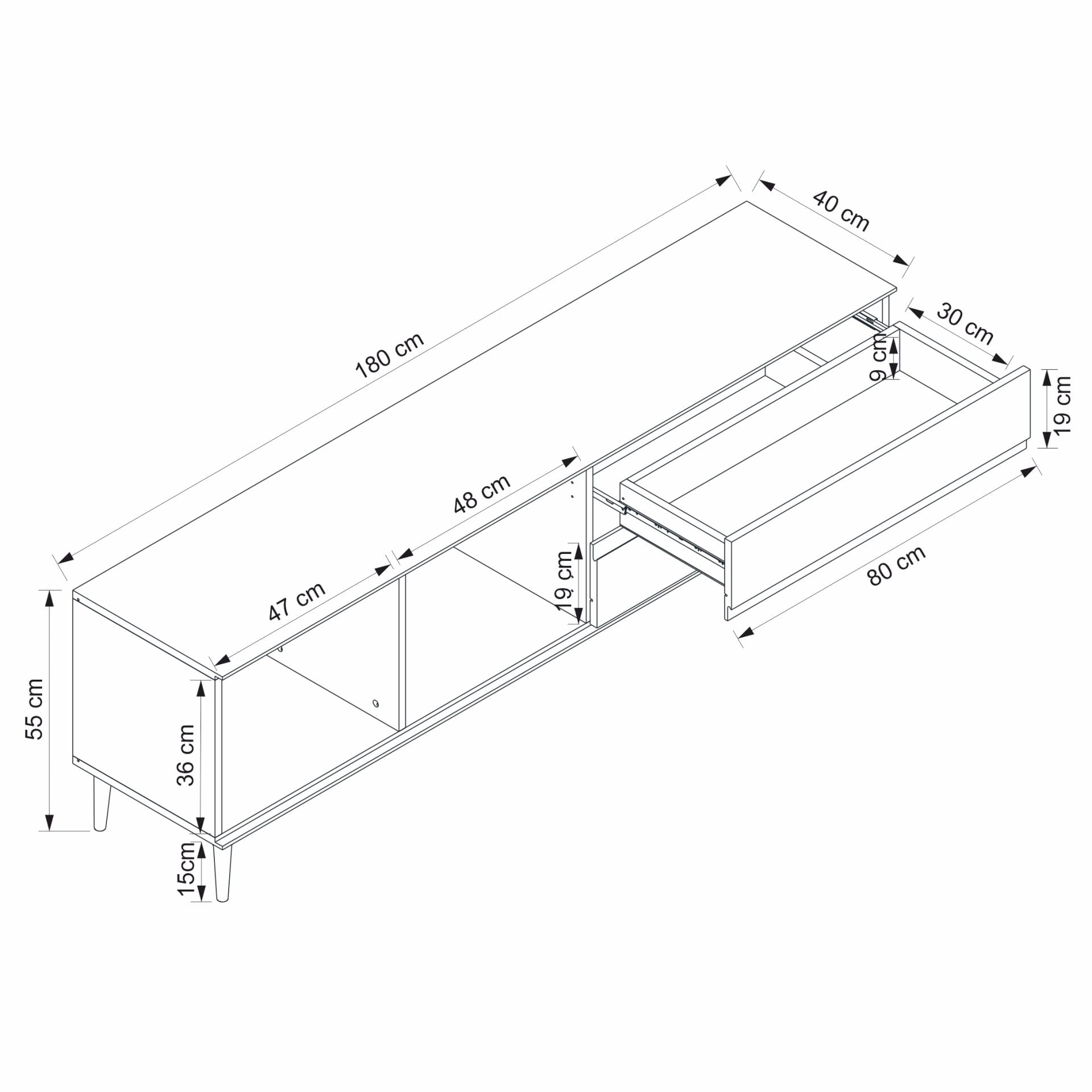 Star TV Ünitesi, yüksek kaliteli melamin kaplı 18 mm yonga levhadan üretilmektedir.