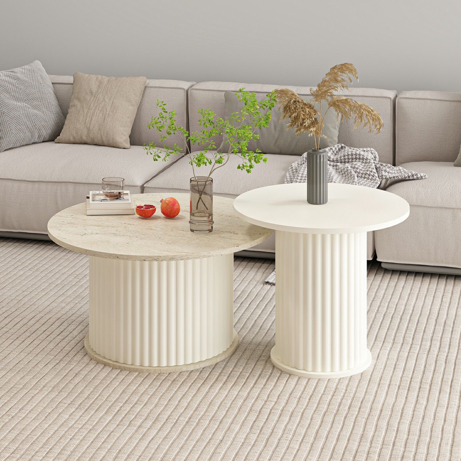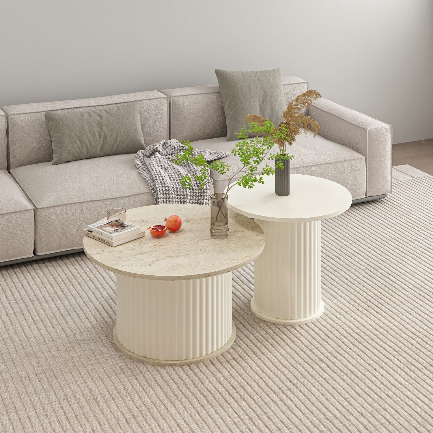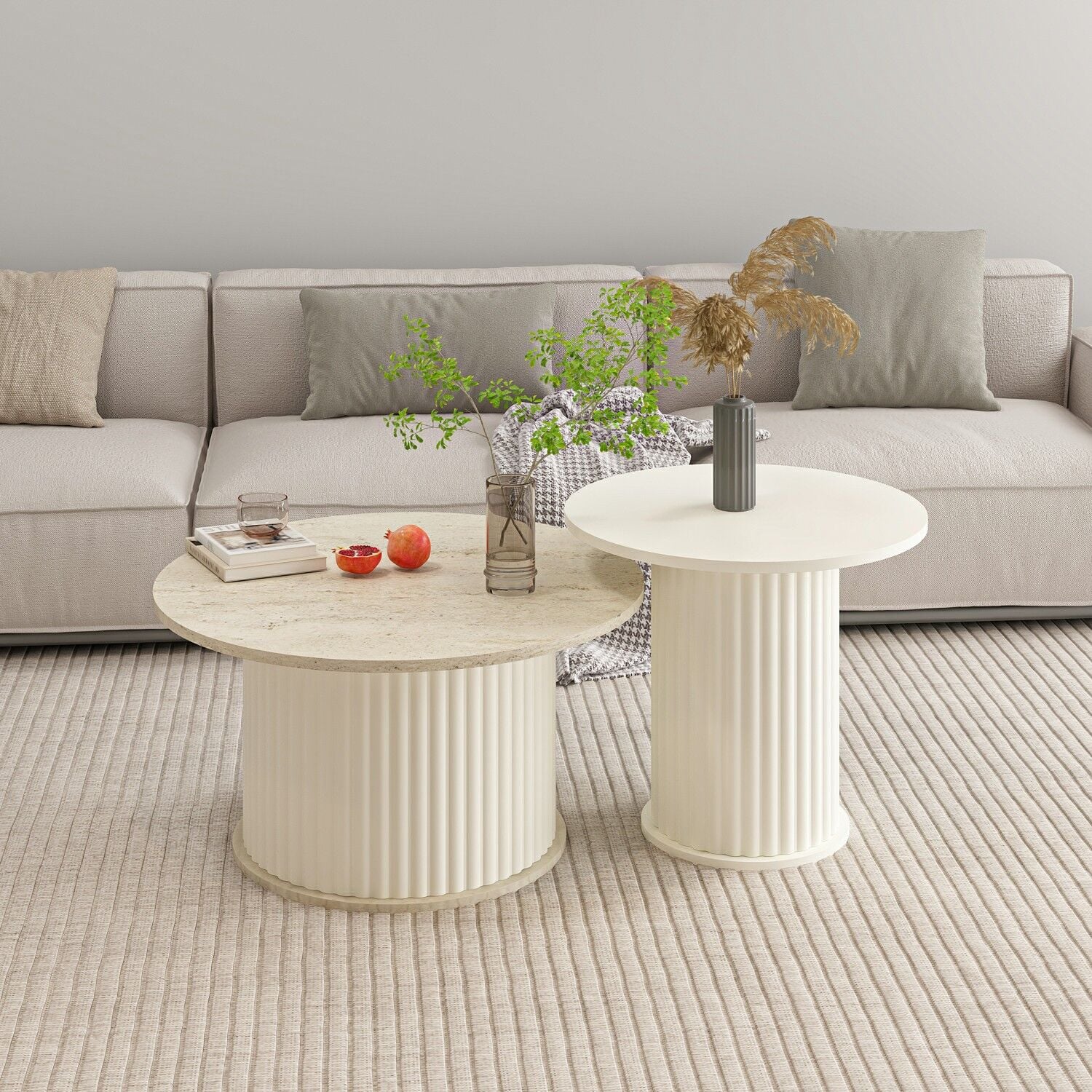 Valento Yuvarlak Orta Sehpa-Aytaşı-Traverten