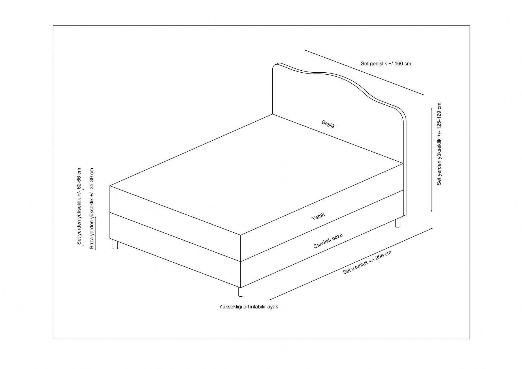 Demonte yapısıyla taşınması ve kurulumu oldukça kolay olan Vassi baza, antrasit baby face kumaşı ile modern ve yumuşak bir dokunuş sunar. 9,5–13 cm ayarlanabilir plastik ayaklar bazayı dengeli destekler ve siyah rengi ile odanıza uyumlu bir estetik kazandırır. Farklı genişlik seçenekleri ile çeşitli oda ölçülerine uygun kullanım sağlar.