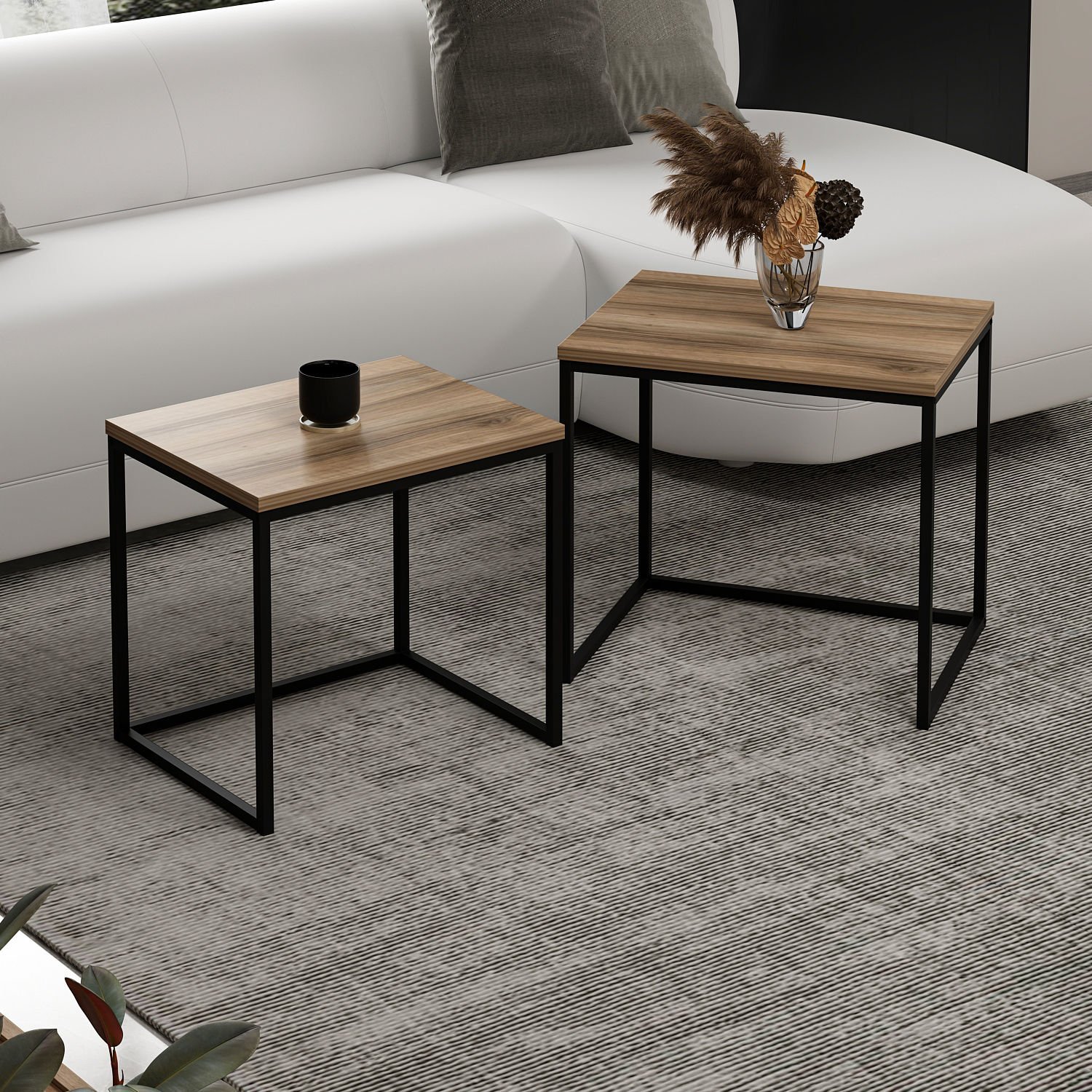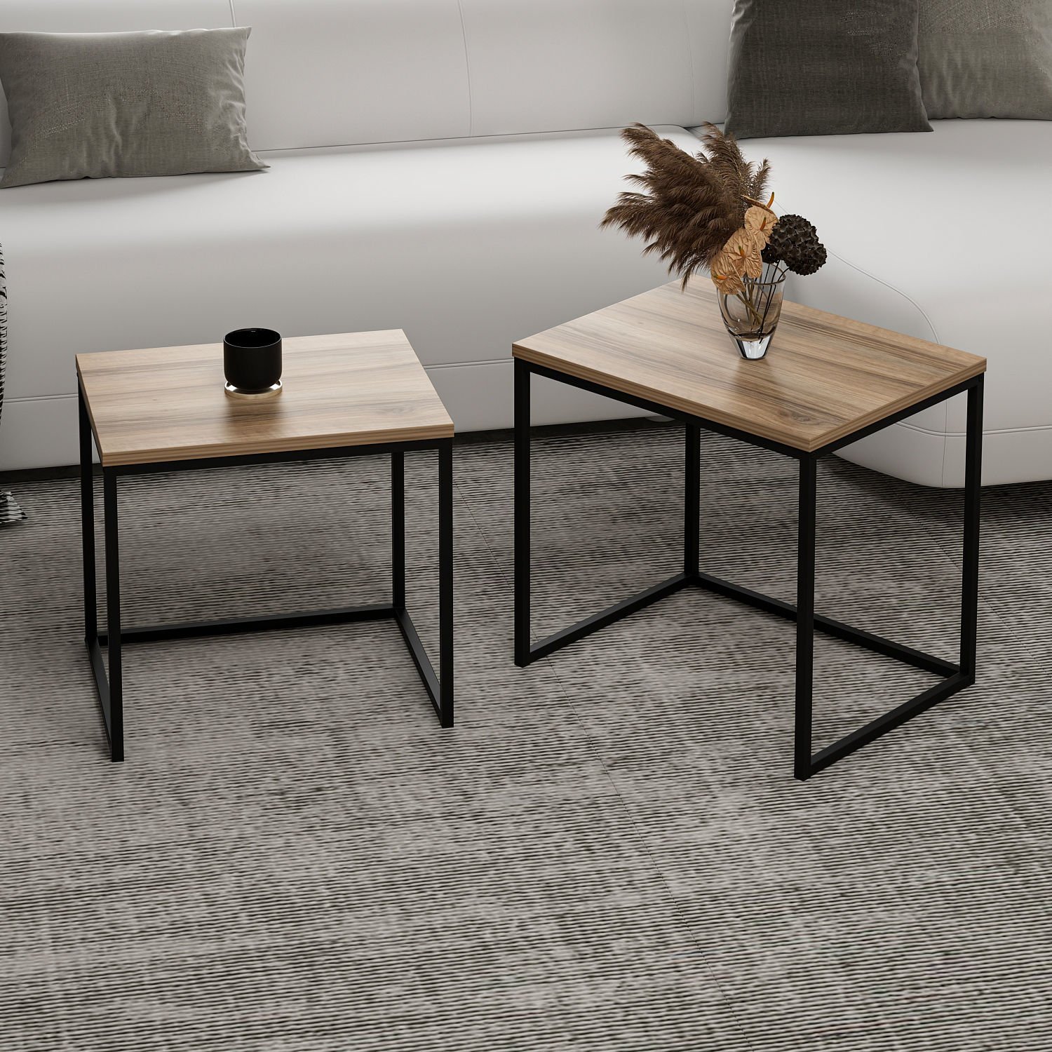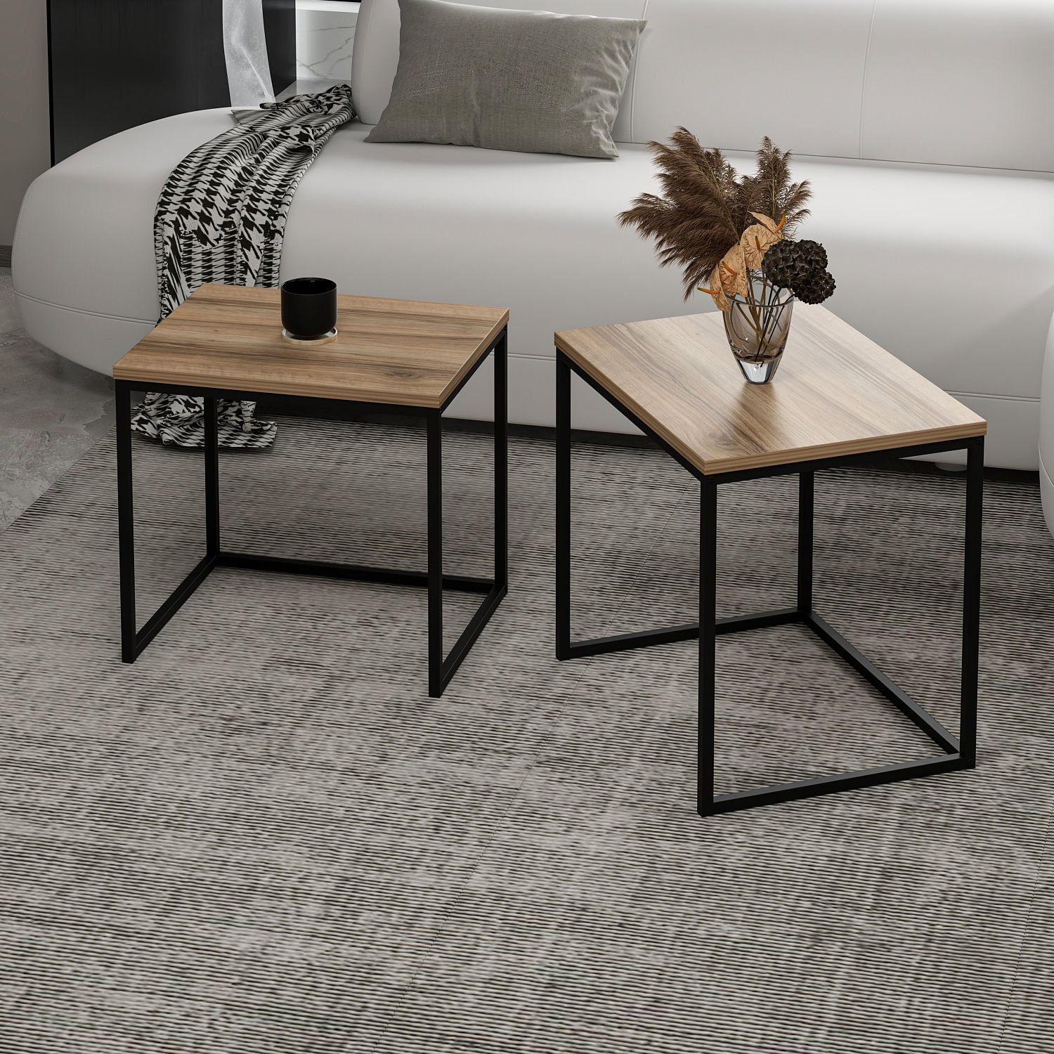 Vera 2'li Zigon Sehpa - Dore/Senkron Siyah