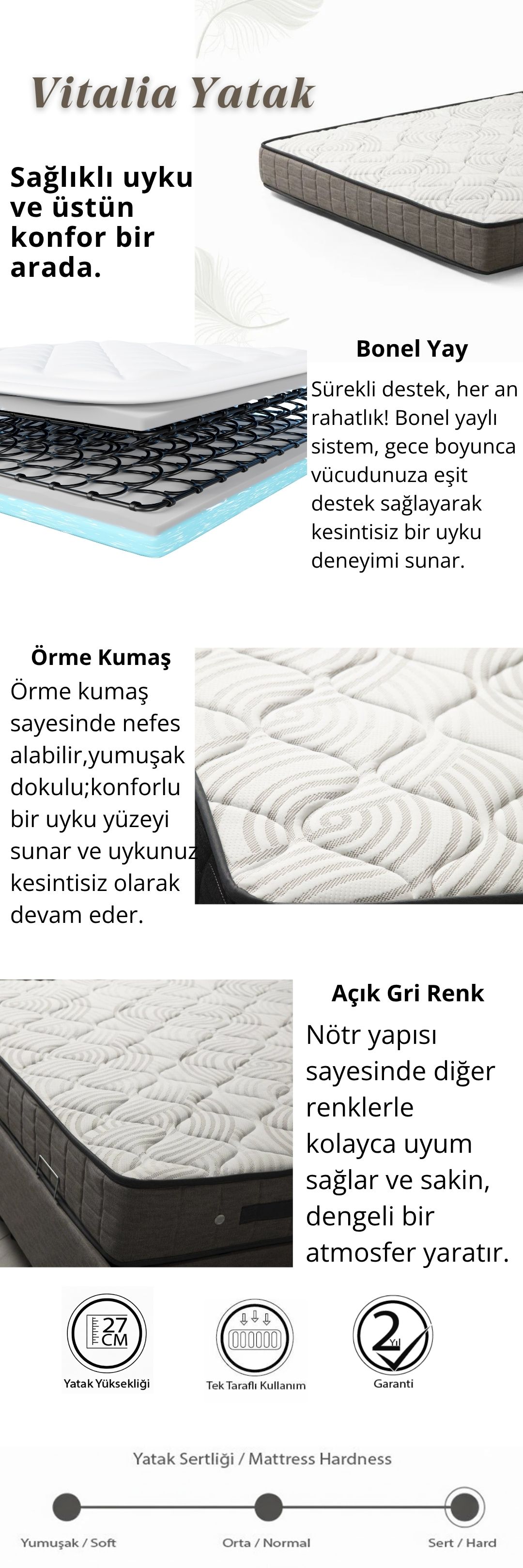 Vitalia Full Ortopedik Yatak - Açık Gri