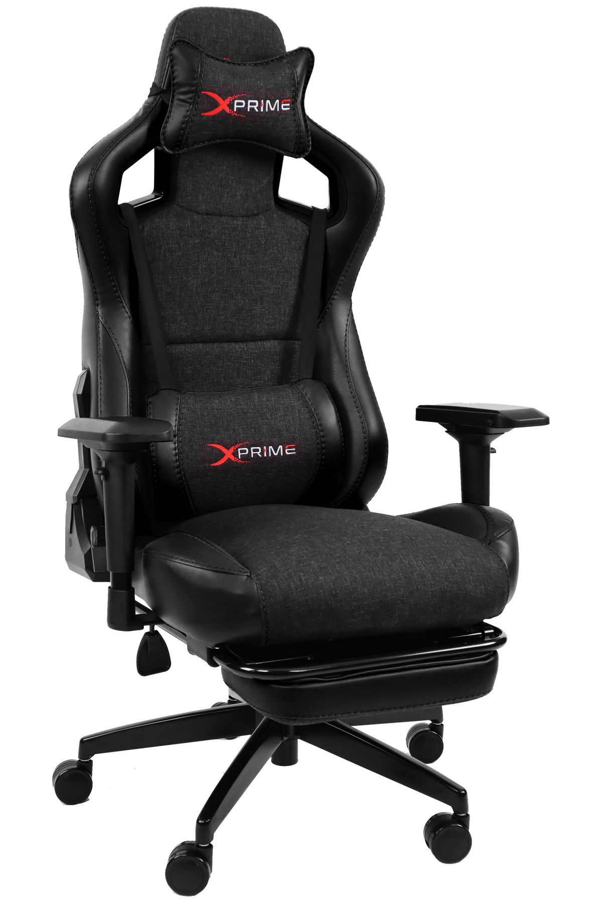 XPrime Over Pro. Oyuncu Koltuğu Hybrid Kumaş 4D Kolçak Ayak Uzatmalı Jet Black Siyah