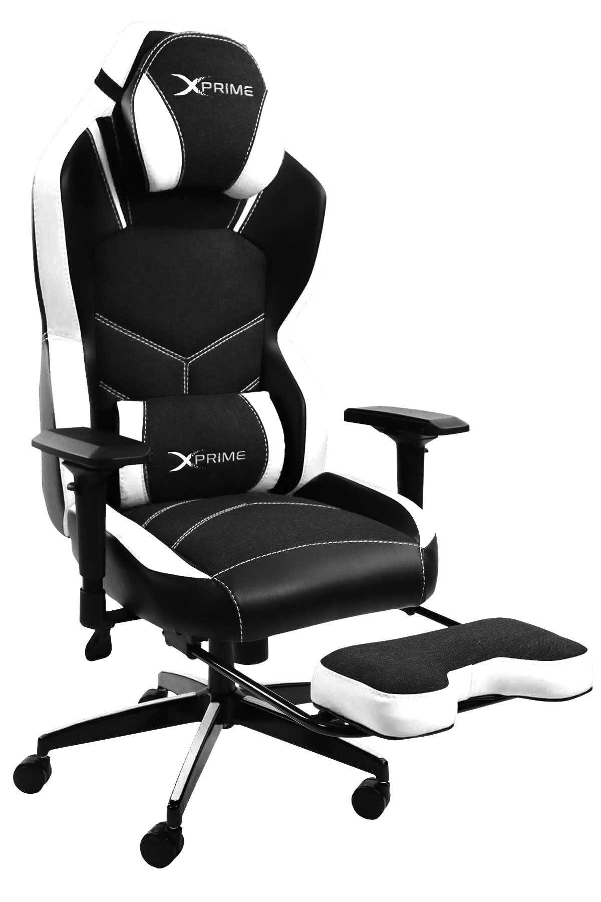 XPrime Tyler Oyuncu Koltuğu Hybrid Kumaş 4D Kolçak Ayak Uzatmalı Beyaz