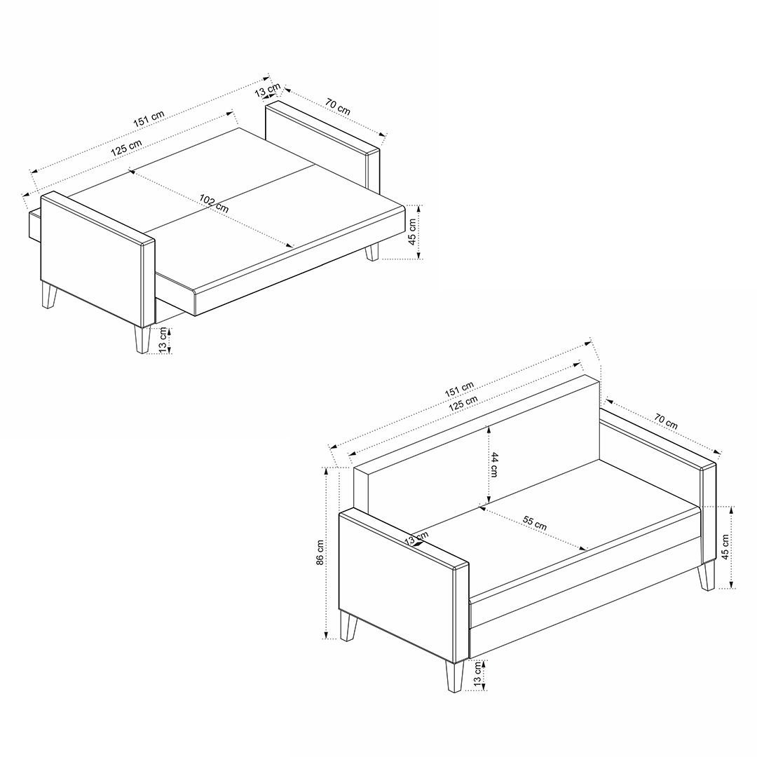 - Geniş ölçüler: 151 cm genişlik, 70 cm derinlik, 86 cm yükseklik.