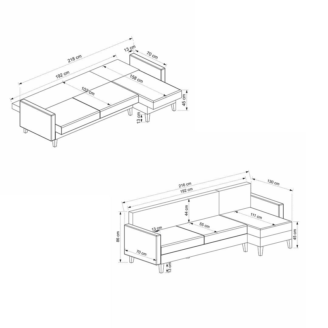 Kompakt ölçüleri (216x130 cm) ile küçük ve orta ölçekli yaşam alanları için ideal olan bu model, sandıklı yapısıyla ekstra depolama alanı sağlayarak evinizde düzeni korumanıza yardımcı olur. Yatak olabilme özelliğiyle de pratik bir uyuma alanına dönüşür. 26 DNS oturma ve 22 DNS sırt sünger sertliği sayesinde dengeli ve rahat bir oturum konforu sunar.